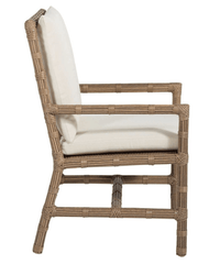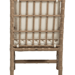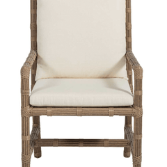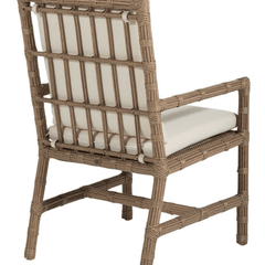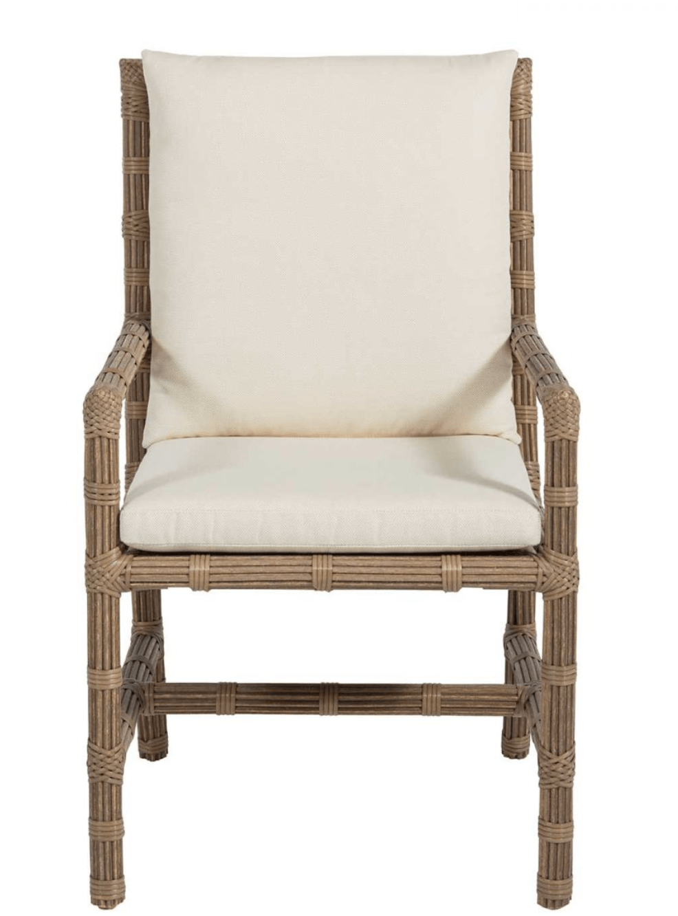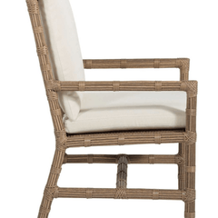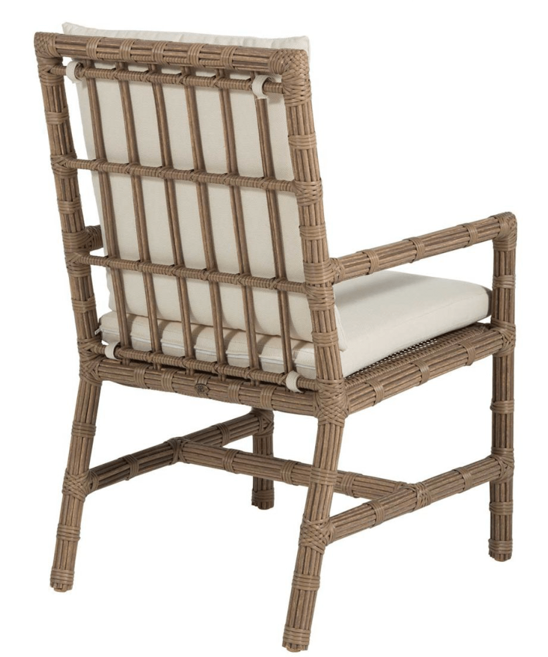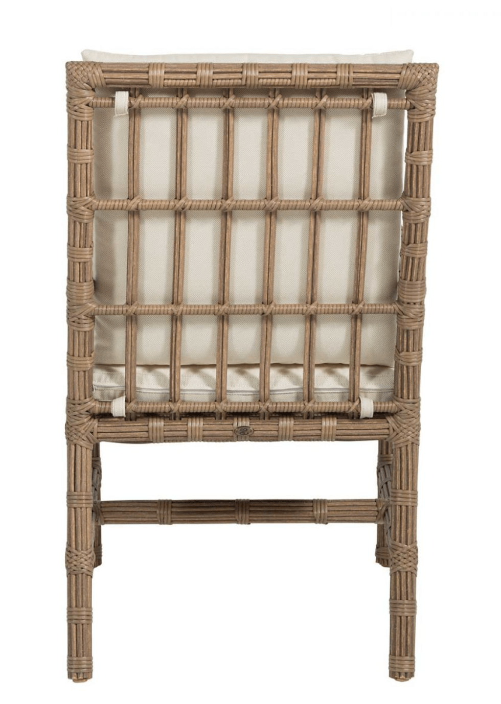 The Del Mar Outdoor Dining Arm Chair evokes the mid-century look of vintage rattan furniture that’s as timeless and classic as it is beautiful. The chair frame is handwoven in UV-resistant N-dura™ resin wicker, which ensures it will withstand outdoor elements for year-round beauty. This versatile chair works well as a dining chair and as a side chair for small spaces.