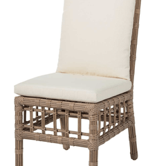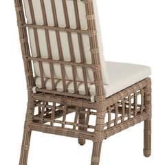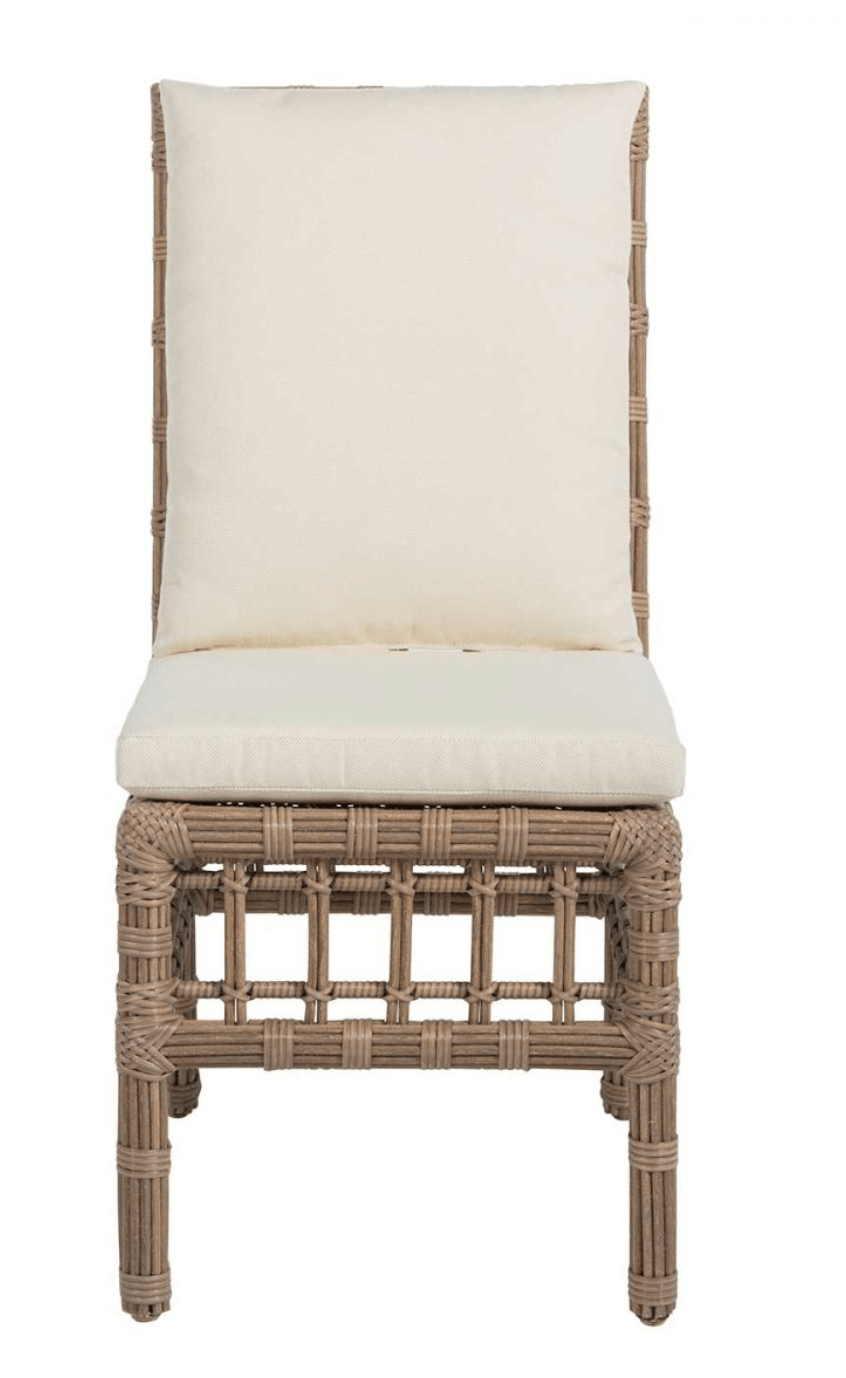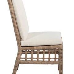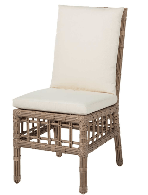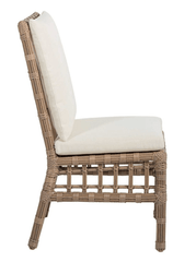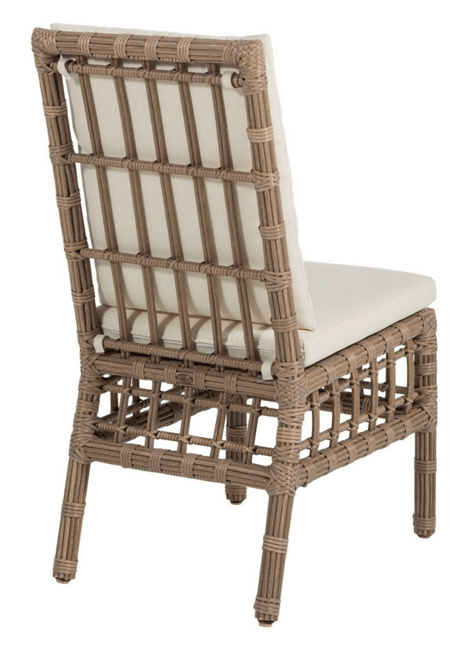 The Del Mar Outdoor Dining Side Chair evokes the mid-century look of vintage rattan furniture that’s as timeless and classic as it is beautiful. The chair frame is handwoven in UV-resistant N-dura™ resin wicker, which ensures it will withstand outdoor elements for year-round beauty. This versatile chair works well as a dining chair and as a side chair for small spaces.