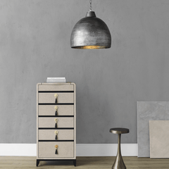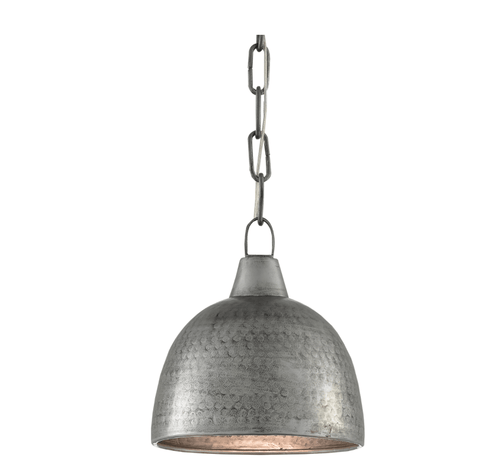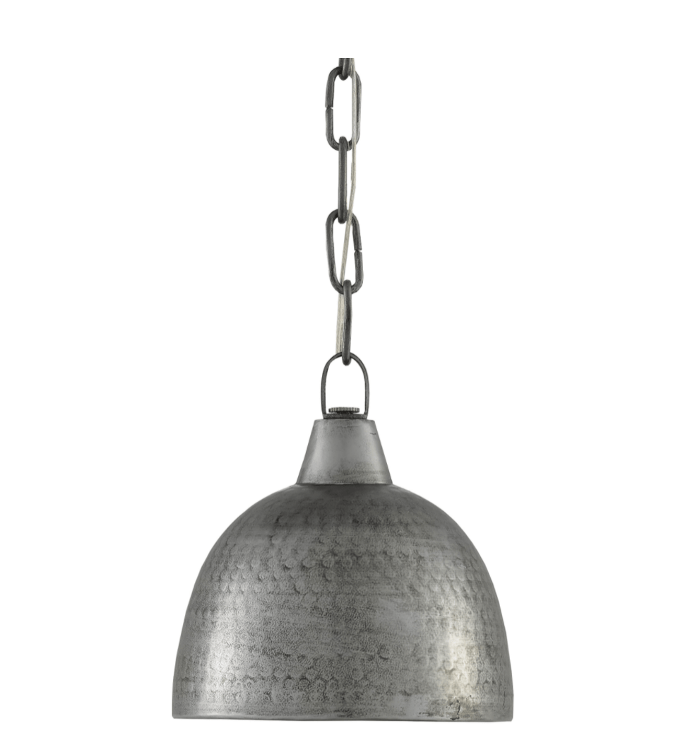 The Delgado Pendant has a hammered dome shape for a cool industrial look with blackened hammered steel finish. Perfect for the kitchen island, peninsula in a duo or trio.