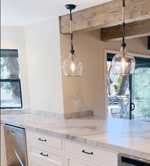A glass demijohn bottle hangs from twisted jute rope to illuminate & add refreshing character over an island, sink, or dining table. Thoughtful detailing, such as a copper edge and glass medallion make this pendant the perfect balance of casual and sophisticated.