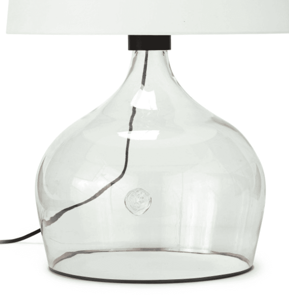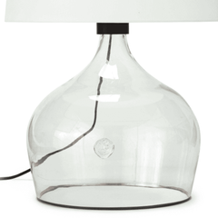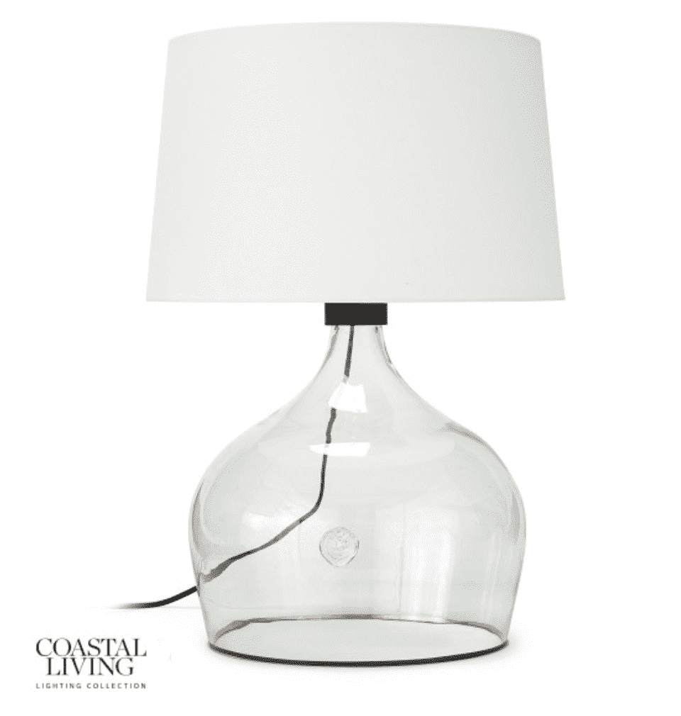 Coastal Living at its best. Add refreshing character to your living room, dining room or bedroom with this beautifully constructed glass vessel lamp. Thoughtful detailing such as its black cloth cord, copper stripe inside the base and glass medallion make this Demi John Large Table lamp the perfect balance of casual and sophisticated.