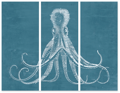 Denim Blue Octopus Triptych - Framed Giclee - $1,450.00