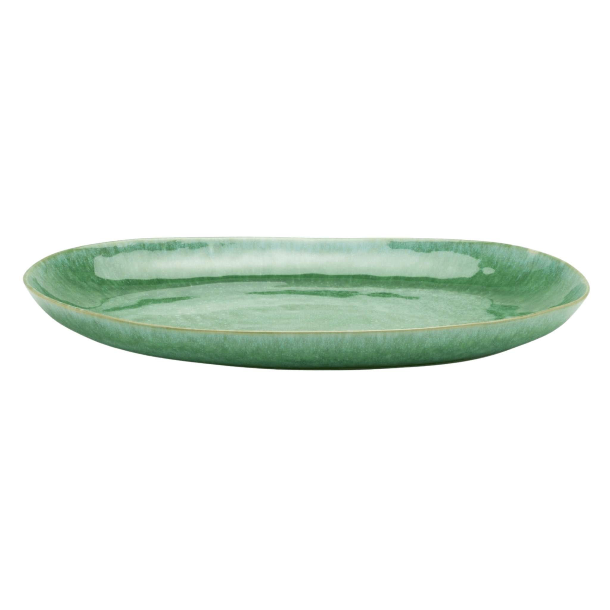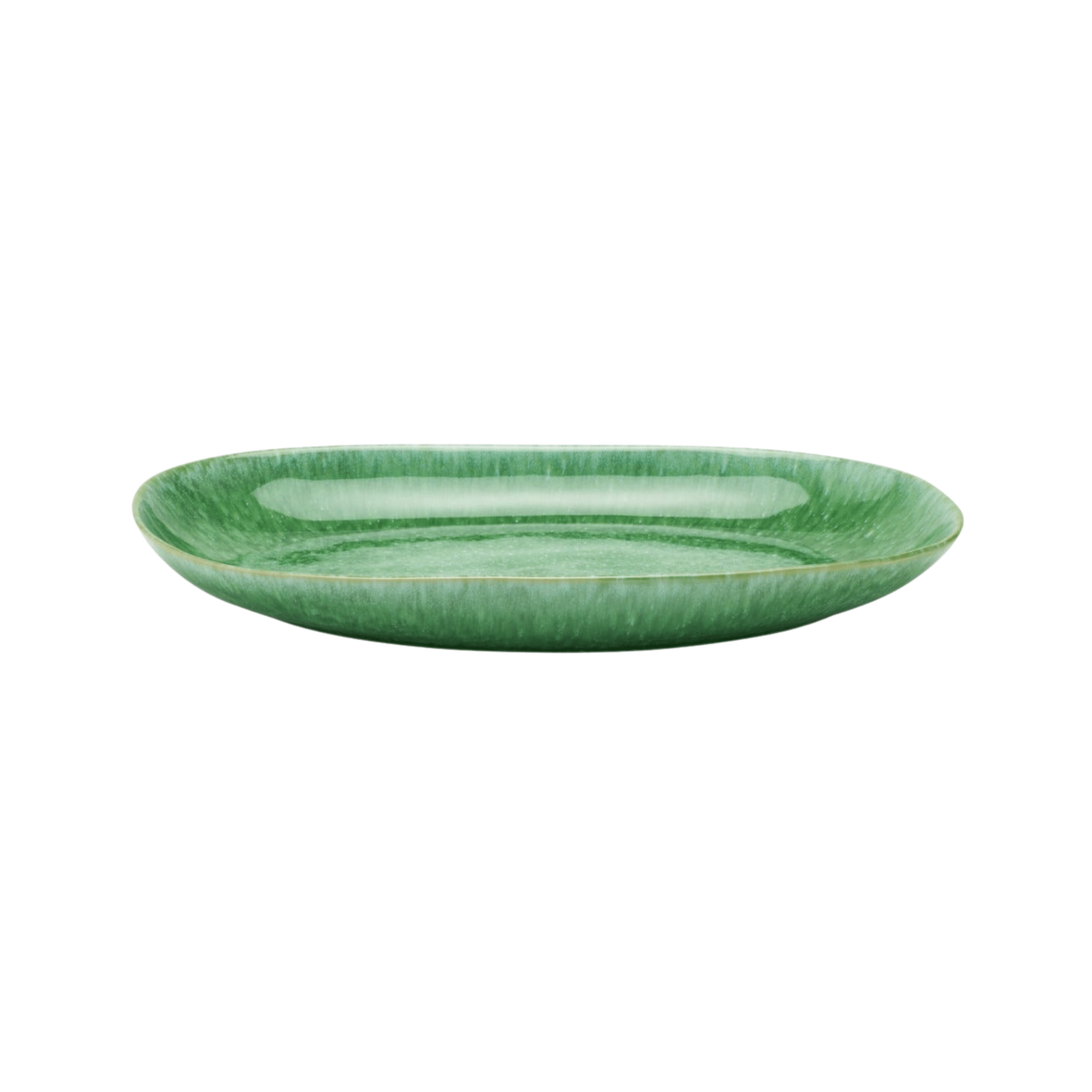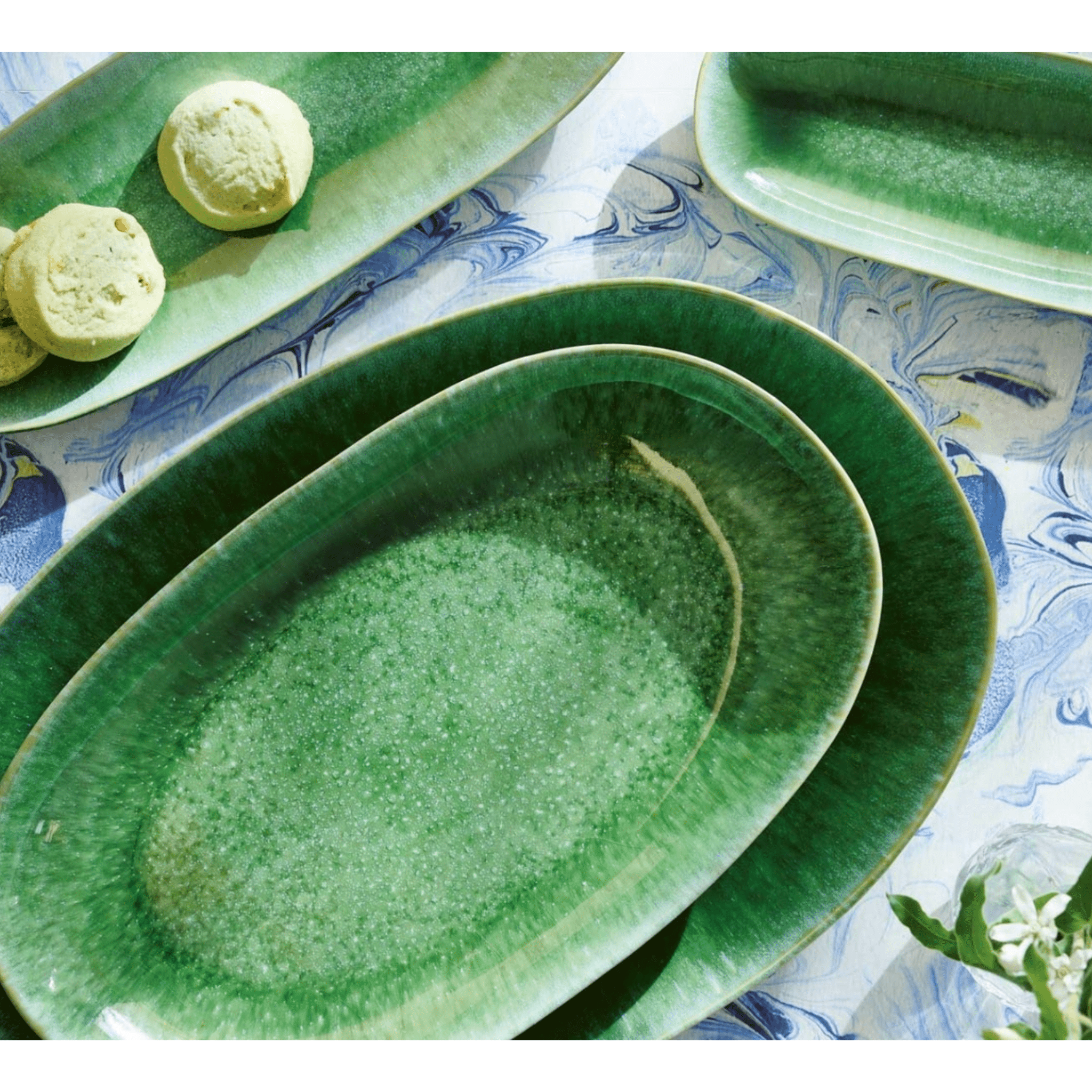 Reactive emerald glaze, speckled in white, gives our Eloise galactic depth. This handmade stoneware collection fills the table with free-spirited elegance.