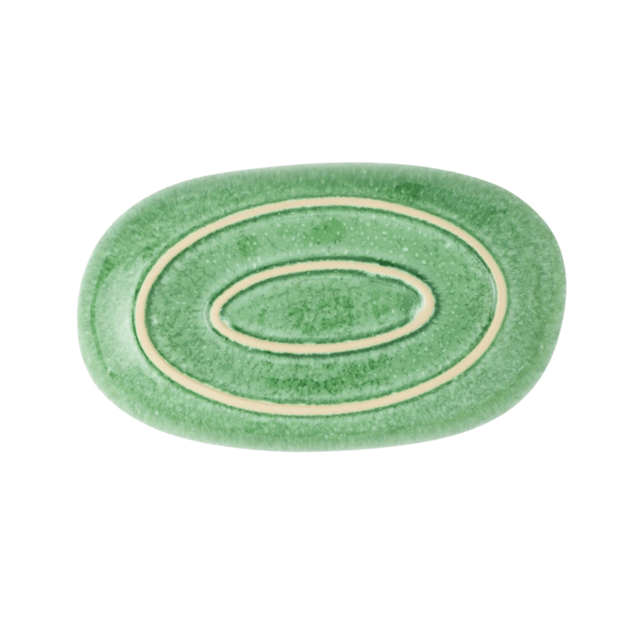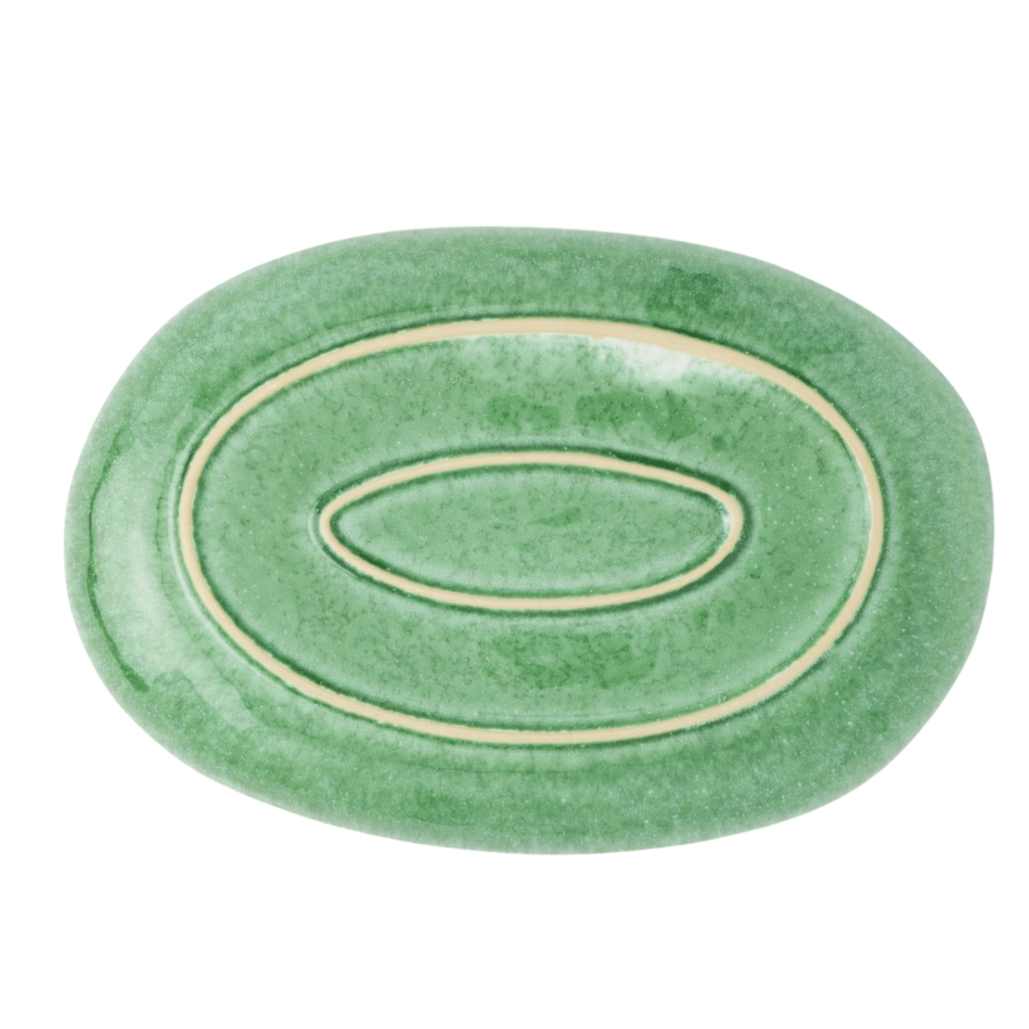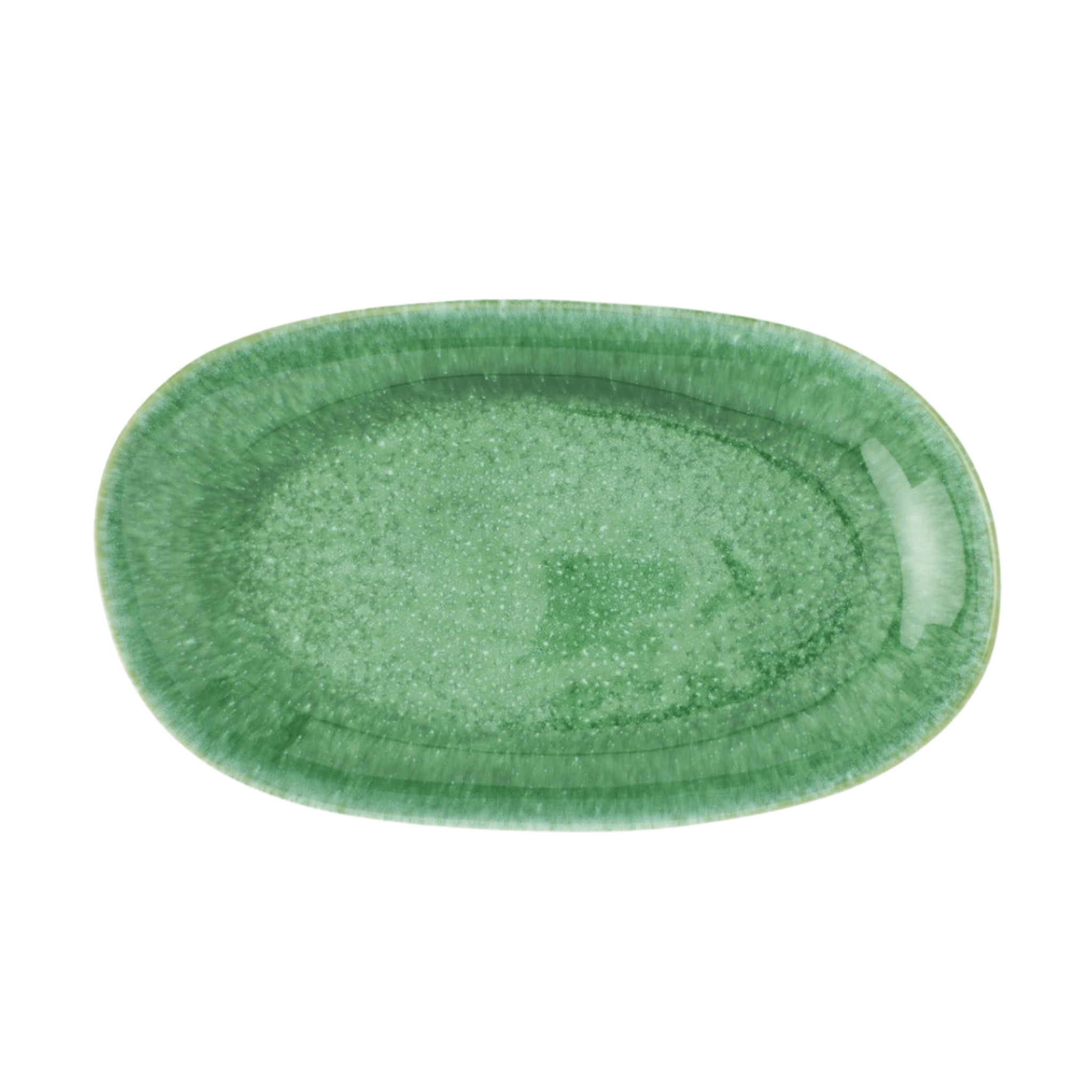 Reactive emerald glaze, speckled in white, gives our Eloise galactic depth. This handmade stoneware collection fills the table with free-spirited elegance.