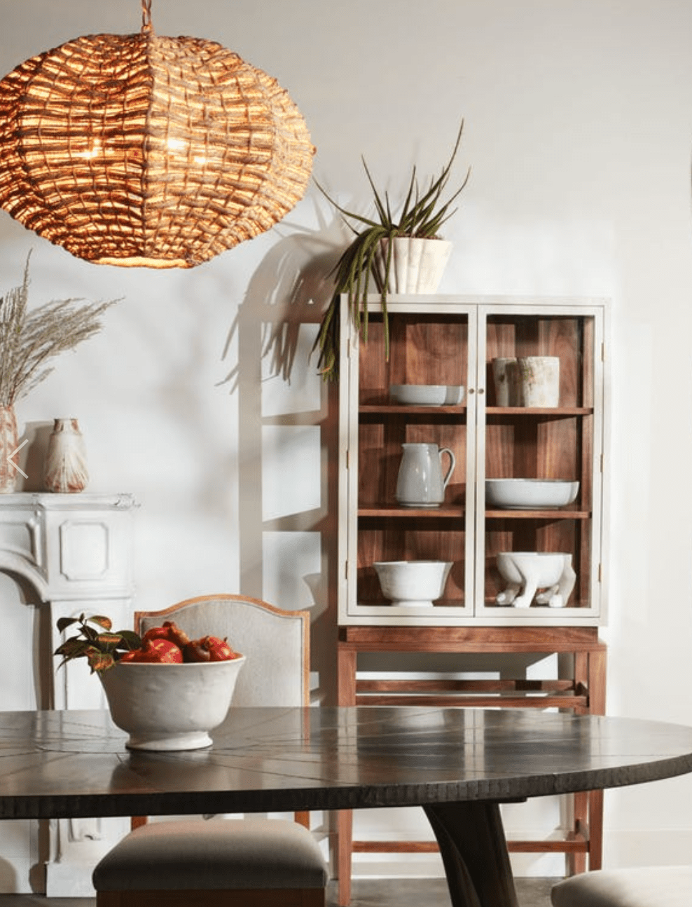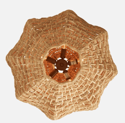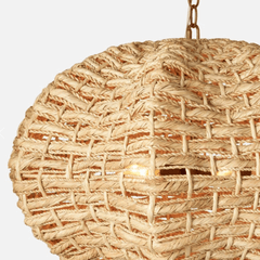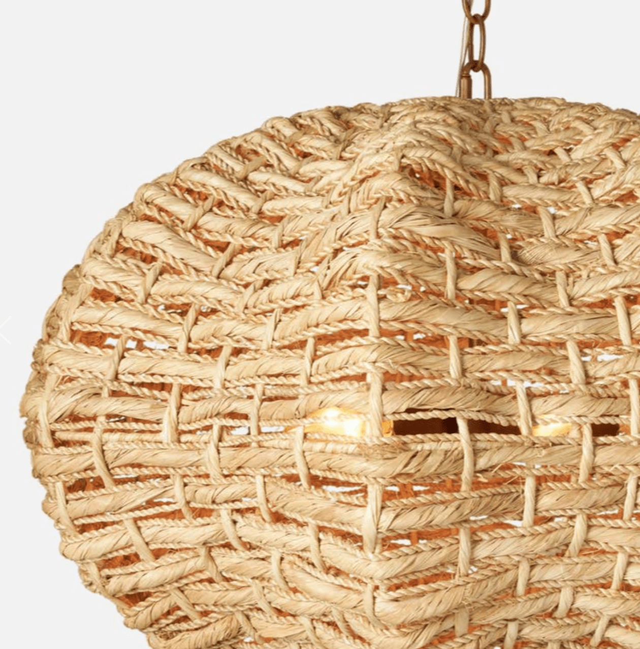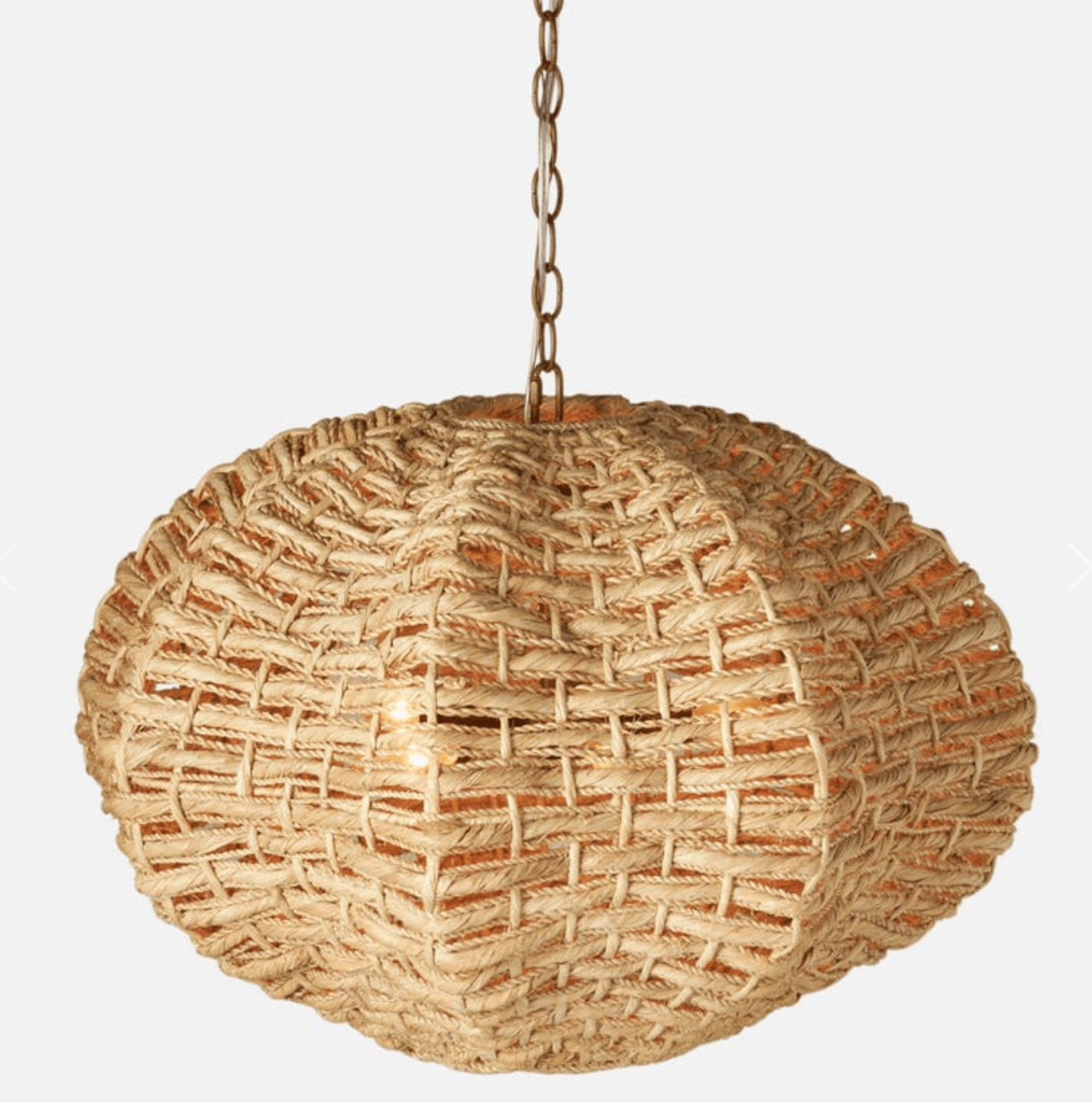Neutral, sculptural, and cool, the Eridian Chandelier/pendant takes advantage of varying strands of twisted abaca rope to create a basket-weave pattern that's totally unique while allowing rays of light to filter through.