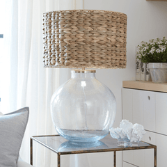 A woven rattan shade is pure magic, especially when paired with a clear glass base. Inspired by nature and relaxation in mind, this table lamp is destined to bring a comforting glow to your home.