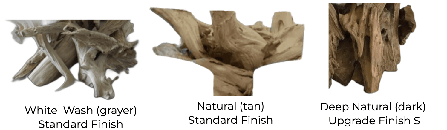 These tables are custom made to order and one-of-a-kind (color variations possible). Available in Natural and Light White Washed as well as Deep Natural (darker) for additional fees and lead time. All sales are final.
