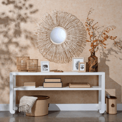 Enjoy a classic style with our Hanford desk collection made from raffia and leather.