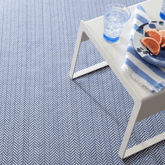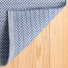 The bestselling Herringbone Handwoven Indoor/Outdoor Rug is a low-maintenance polypropylene rug that is washable, scrubbable, and bleachable, perfect for entryways, mudrooms, kitchens, and patios. Timeless and surprisingly soft underfoot, it's fade-resistant, fast-drying, and will stand up to wear and tear for years to come.The fun denim blue hue with bright ivory accent, this classic pattern is the perfect way to perk up bedrooms, hallways, stairs, and more.