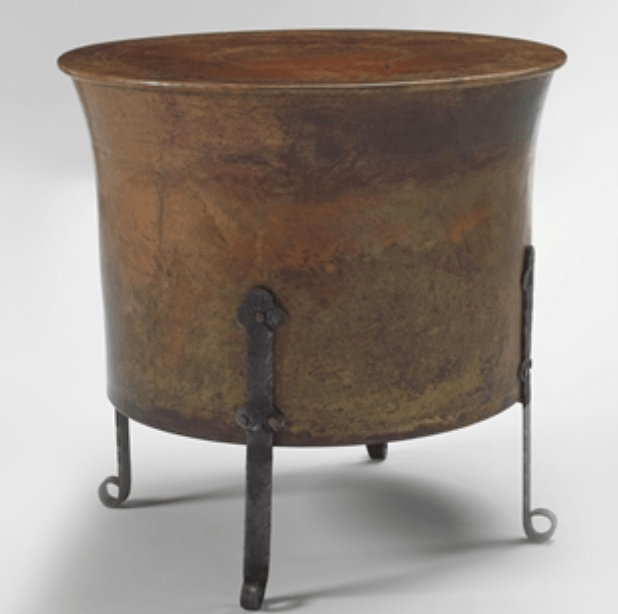 Rustic copper cauldron side tables are crafted of natural elements thus creating  a warm lustrous center piece that's also rugged and may be used both indoor and outdoor. The Cauldron Style have an iron leg pedestal base.