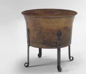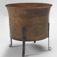 Cauldron and Drum Tables can be used both indoors and outdoors. Please note that when used outdoors, it is not necessary to polish the table but you should expect weathering to occur. The copper will verdigris to a beautiful green color, like that of the Statue of Liberty.