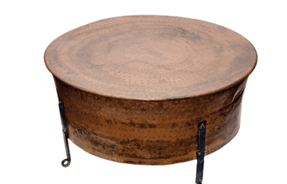 Cauldron and Drum Tables can be used both indoors and outdoors. Please note that when used outdoors, it is not necessary to polish the table but you should expect weathering to occur. The copper will verdigris to a beautiful green color, like that of the Statue of Liberty.