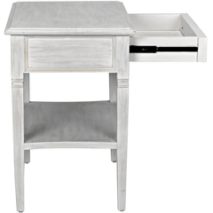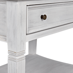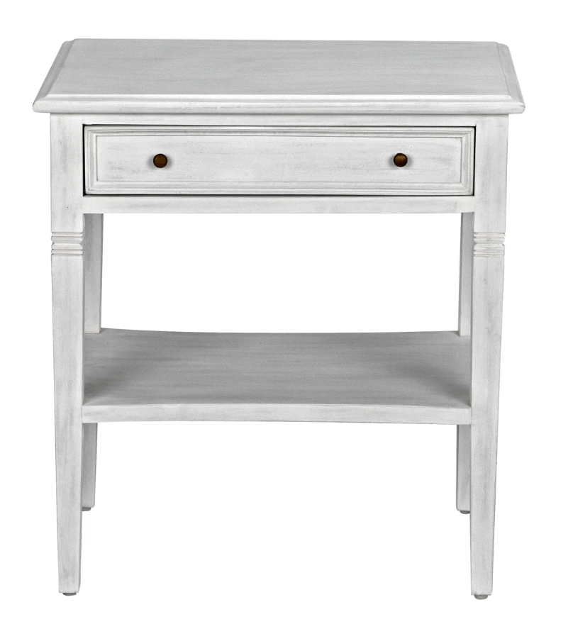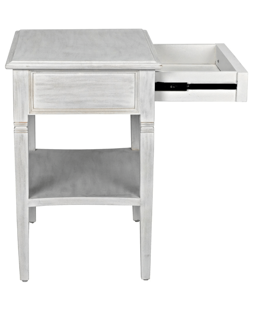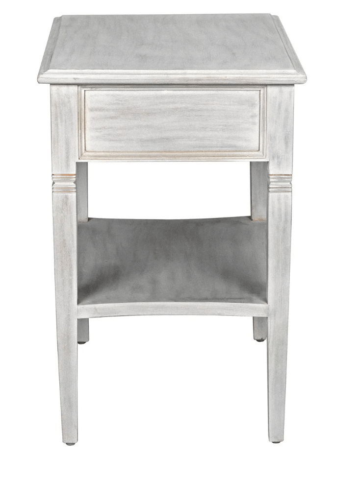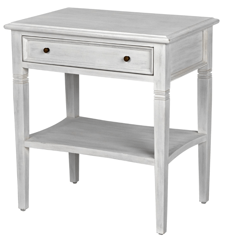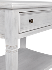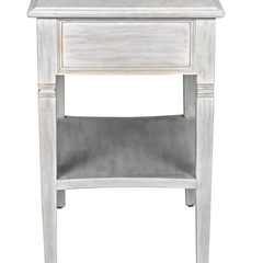 A white wash finish from natural paint gives an antique appeal to the mahogany wood on the Jensen Beach side table. Clean lines and subtle details make this a versatile piece that will compliment any room.