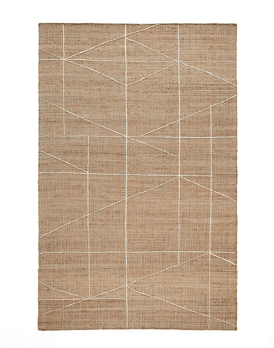 Promote a relaxed sensibility with mid-century flair. This gorgeous flatwoven rug, hand-loomed from slubby, naturally colored jute makes a bold and sustainable statement that's punctuated with random, large-scale geometry of cotton embroidery.