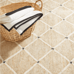 Part of our best-in-class collection of design-focused, machine-washable rugs. We've taken our most popular jute rug weaves and translated into this chic, machine-washable rug. This simple latticework pattern, punctuated by charcoal dots at the crisscross, makes a convenient and eye-catching option anywhere you need an easy-to-clean rug. Great for homes with pets and high-traffic areas like entryways, mudrooms and kitchens.