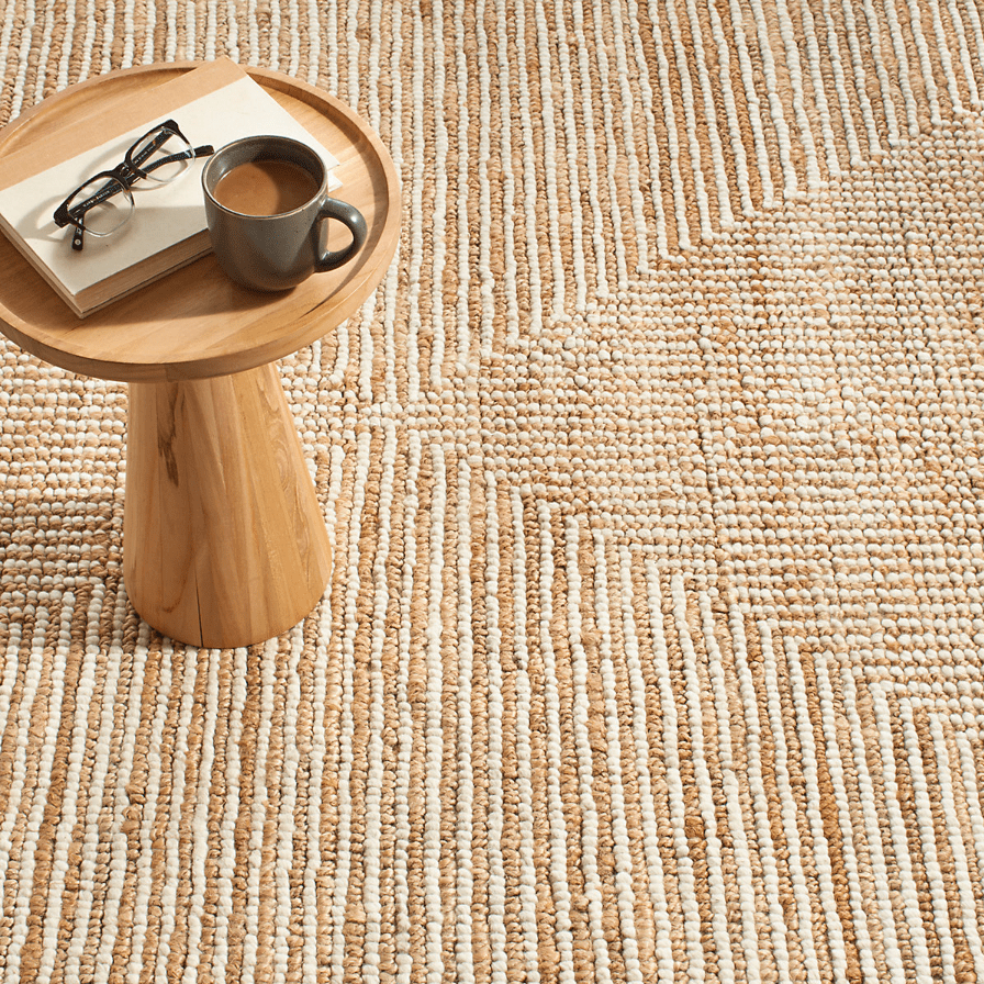 Grace any space with this modern and timeless geometric jute-blend rug. Diagonal sections of the striking design are engineered to highlight the dimensional contrast of naturally colored jute with the warmth of nubby ivory wool. Durable, eco-friendly, and forgiving, the subtle variations in natural color and chunky weave create a functional and elegant base layer for any indoor room.