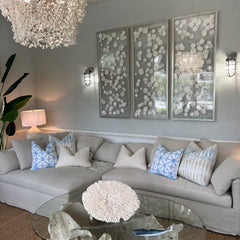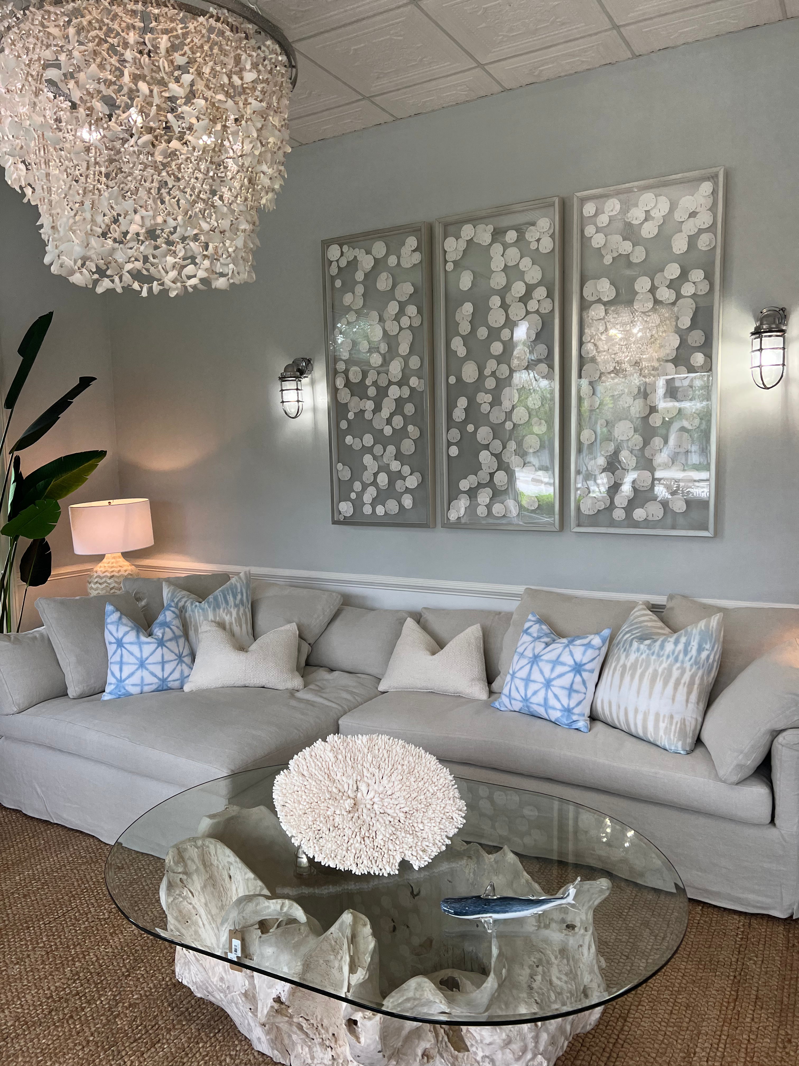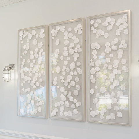 Bring a touch of coastal whimsy to your home with our Silver Framed Sand Dollar Art. This elegant artwork features floating sand dollars, creating a serene and playful design inspired by the beauty of the ocean. The silver frames add a touch of sophistication, making it perfect for any beach house decor or coastal living room.