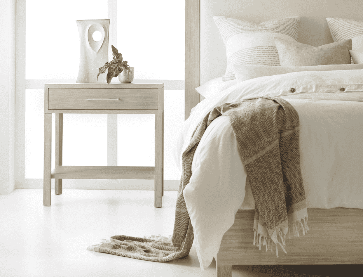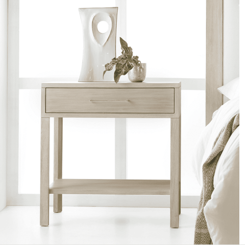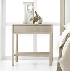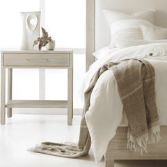 Finished in a Ashe Veneer, the Laurel Grove Bedside Chest has a single solid oak drawer with a soft close feature and finished with a stainless or brass pull. The perfect companion to the Laurel Grove Bed.