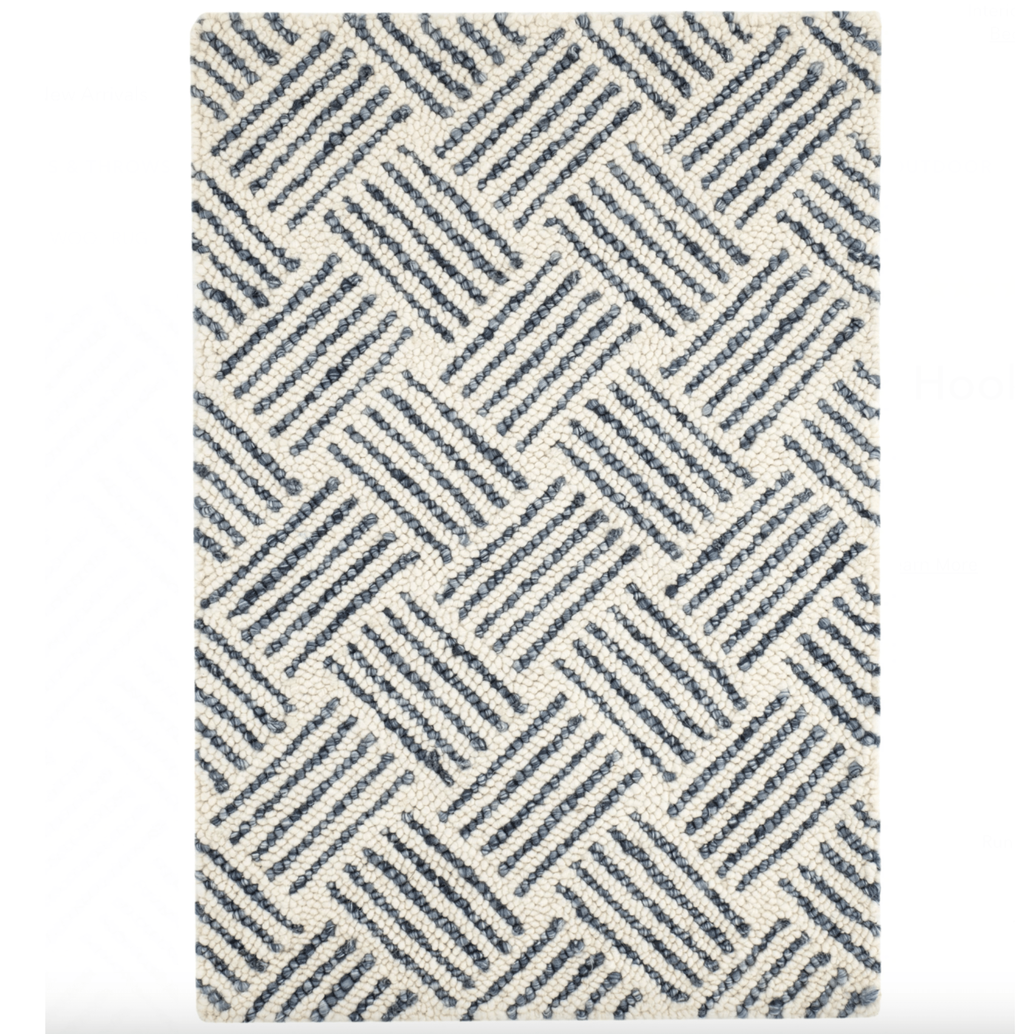 With its striped basketweave design and trend-forward colors, the Layers Hand-Hooked With its striped basketweave design and trend-forward colors, the Layers Hand-Hooked Wool Rug makes for a sophisticated and timeless foundation. Woven from pure wool, the hand-hooked construction gives it a dense, plush pile that is sumptuously soft underfoot. It’s perfect for high-traffic spaces like living rooms, dining rooms, kids’ rooms, and hallways.