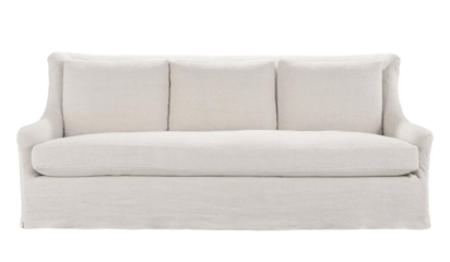 Command attention and comfort with the Leeward Isle Slipcovered Sofa. It's a regal statement piece designed for luxurious, island-inspired lounging. Gracefully sloped arms create an inviting silhouette, while a single bench seat and three tailored back cushions offer a perfect blend of support and sink-in softness. With its tall back and elegant lines, the Leeward lets you relax like royalty — effortlessly refined, endlessly comfortable.
