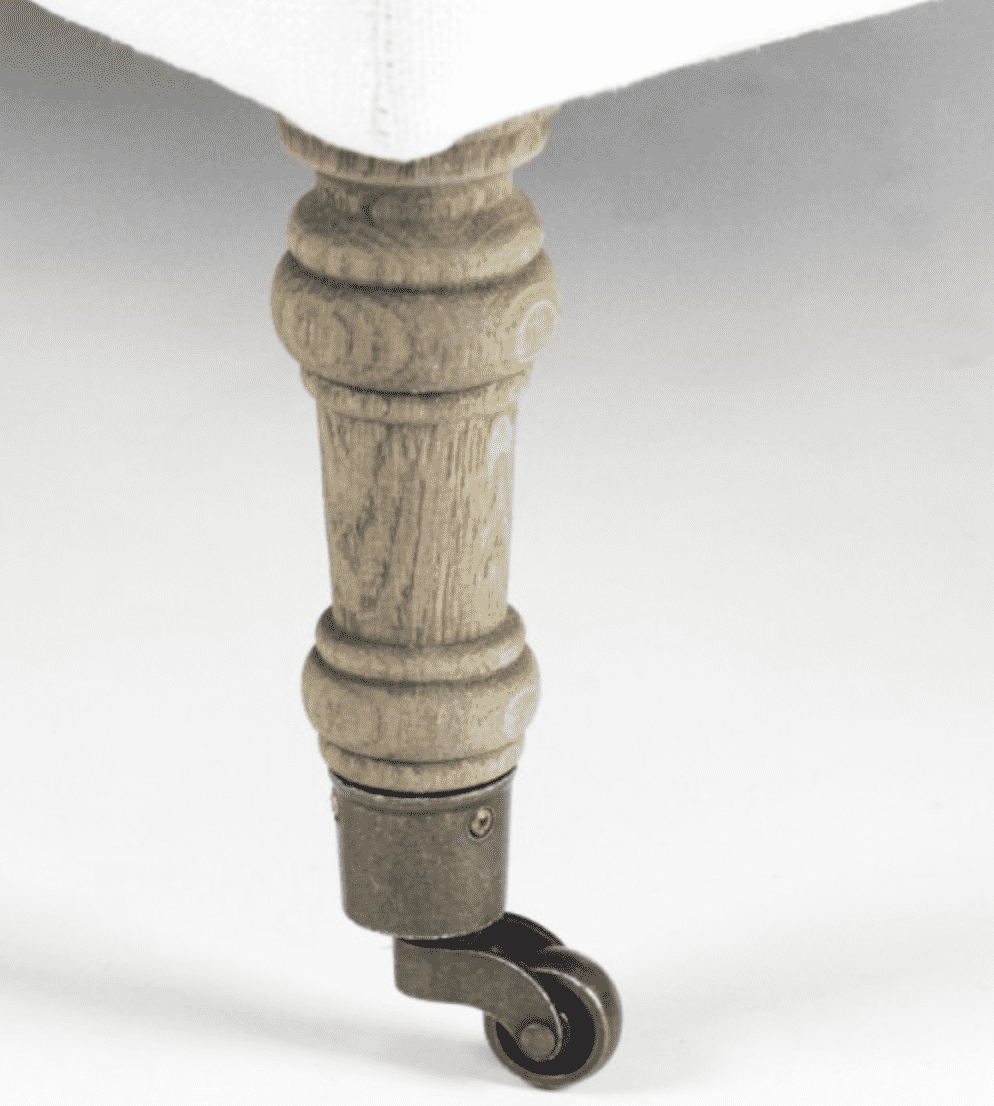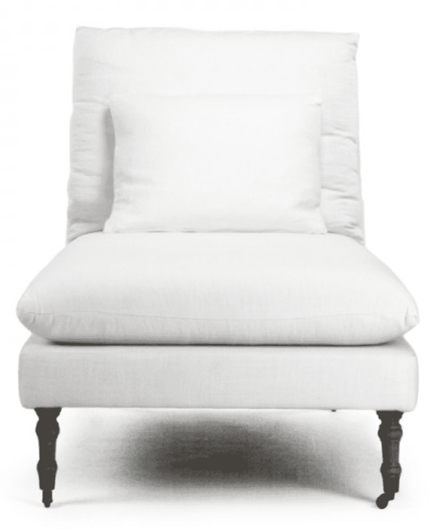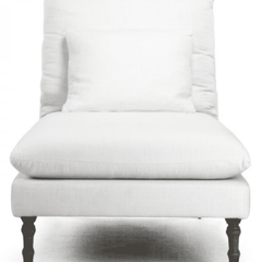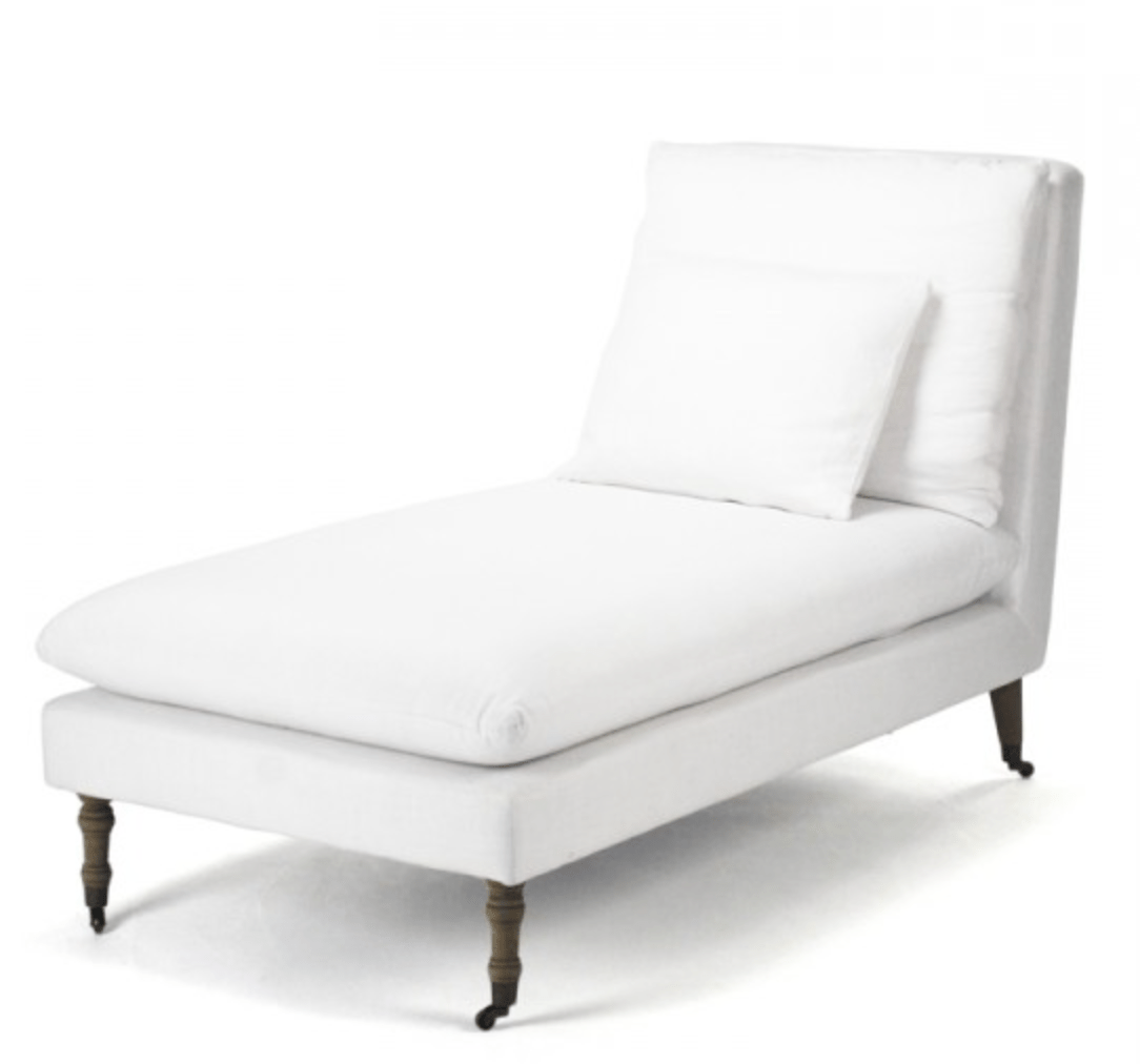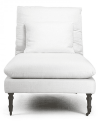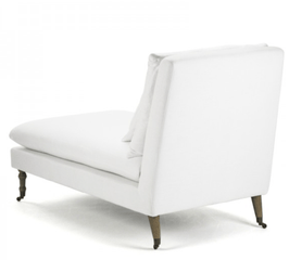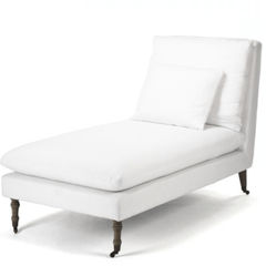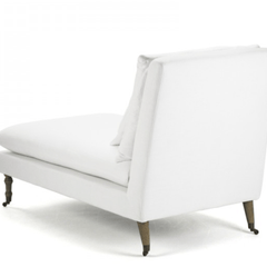 Simple with clean lines and a manicured design, the Lena Upholstered Chaise is the perfect piece for the master suite, reading nook or living area. Solid oak legs are capped with ferule casters for ease of movement. The fabric on the lounge is is a white cotton upholstered fabric with a complimentary lumbar pillow.