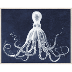 This captivating octopus art, titled "Lord Bodner in Blue", is sure to add intrigue to your coastal art collection. Originally taken from a classic detailed 1800's copperplate engraving. Framed artwork. Custom created. Can take 2-3 months to create.