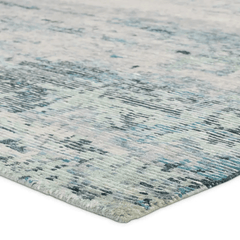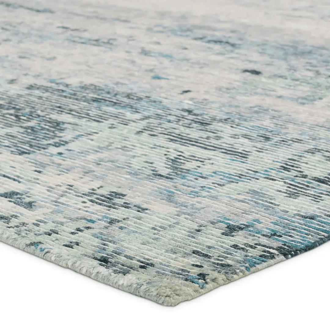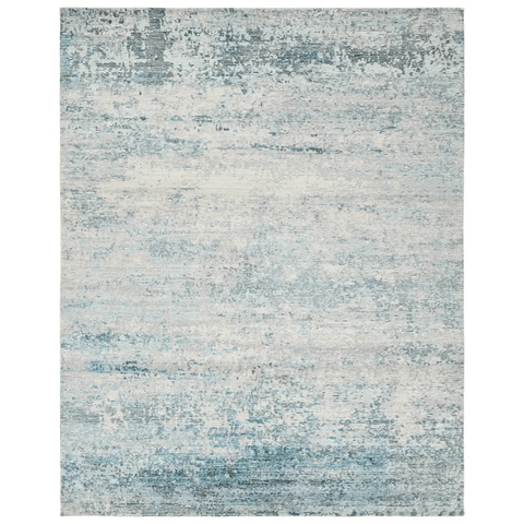 The handknotted Rowan provides abstract designs crafted with viscose and linen. The Nantale pattern boasts an alluring, subtly-distressed watercolor motif. Blue, light grey, mint, and ivory hues meld together in a mottled mosaic, subtly lustrous in a viscose and linen construction. This soft rug delights in bedrooms, formal living rooms, formal dining areas, and sitting rooms, perfect for low-traffic spaces.