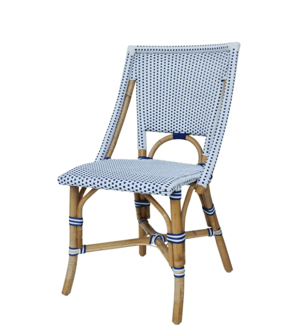 The Marbella Side Chair Set of Two is the newest take on the bistro chair in a newly revamped version with a solid, fully woven back.