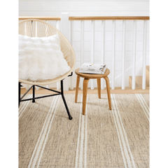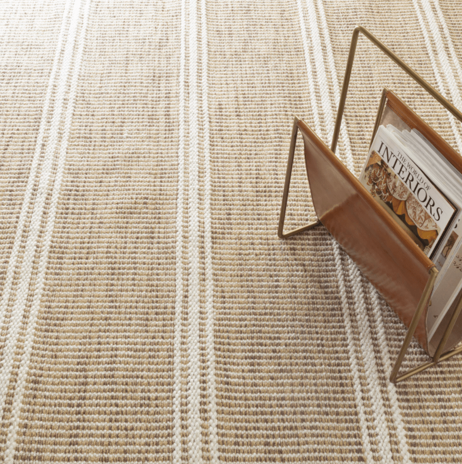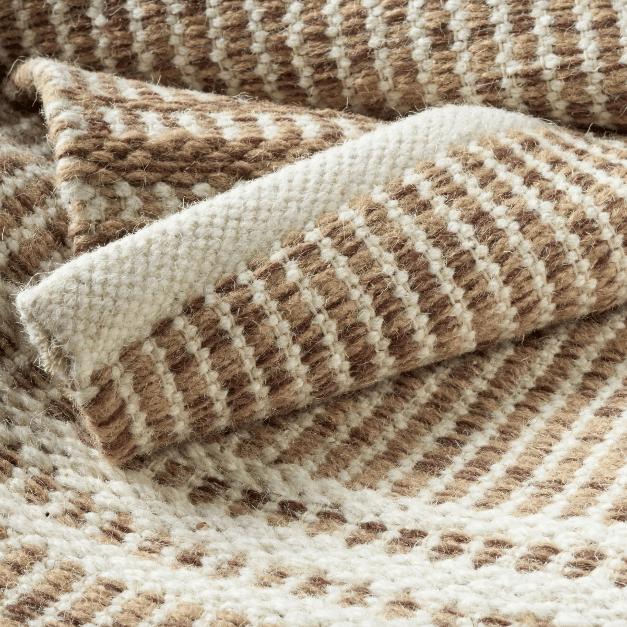 Dreamy faded mini stripes whisper poetic behind herringbone relief spacers like the sound of the distant surf. Add a beachy feel with this weathered effect, durable, lightweight, wool flatweave rug. Versatile for all high traffic areas with a modern and timeless touch. Expertly handwoven in a low profile structure from naturally warm and cozy wool, a durable, soil resistant, sustainable, biodegradable resource.