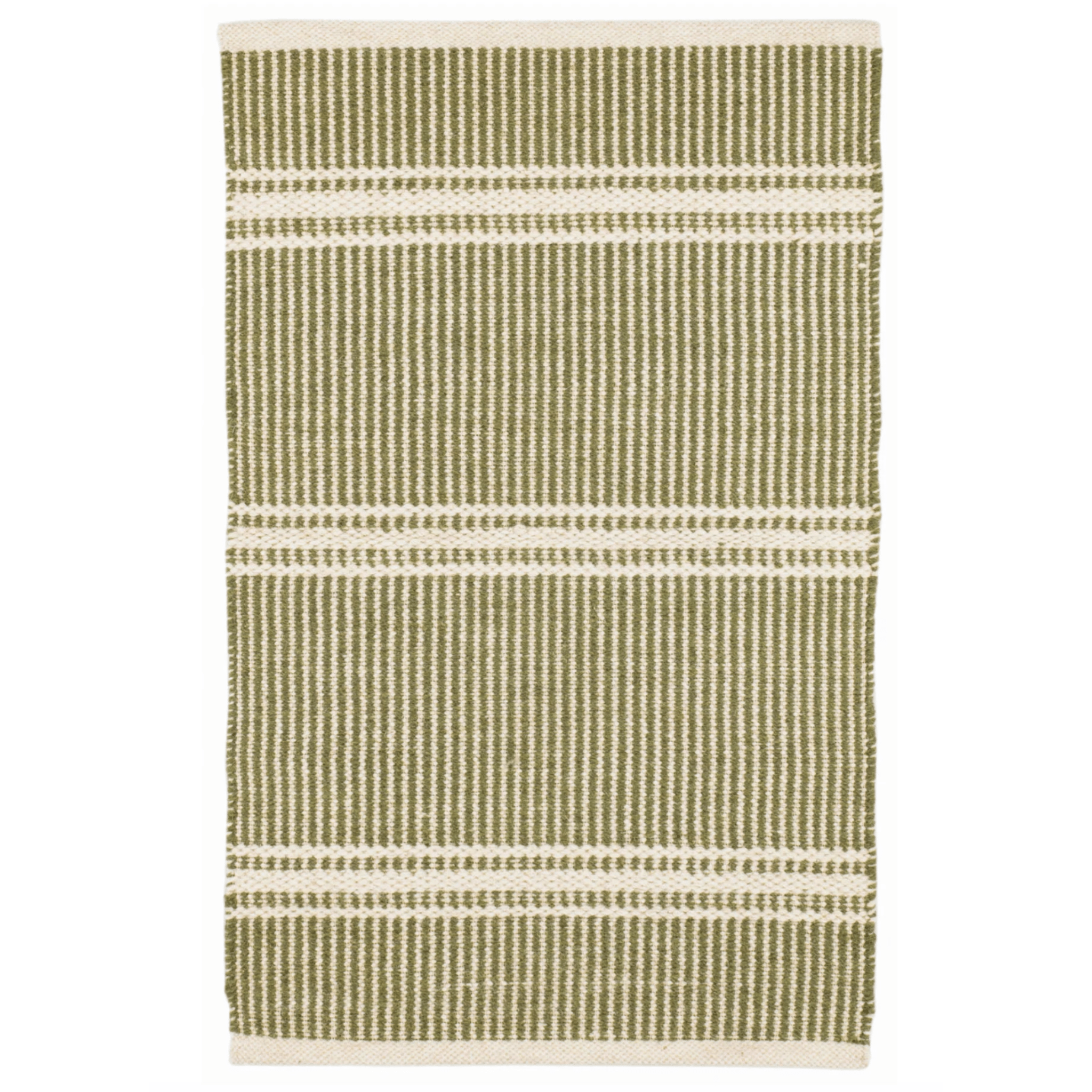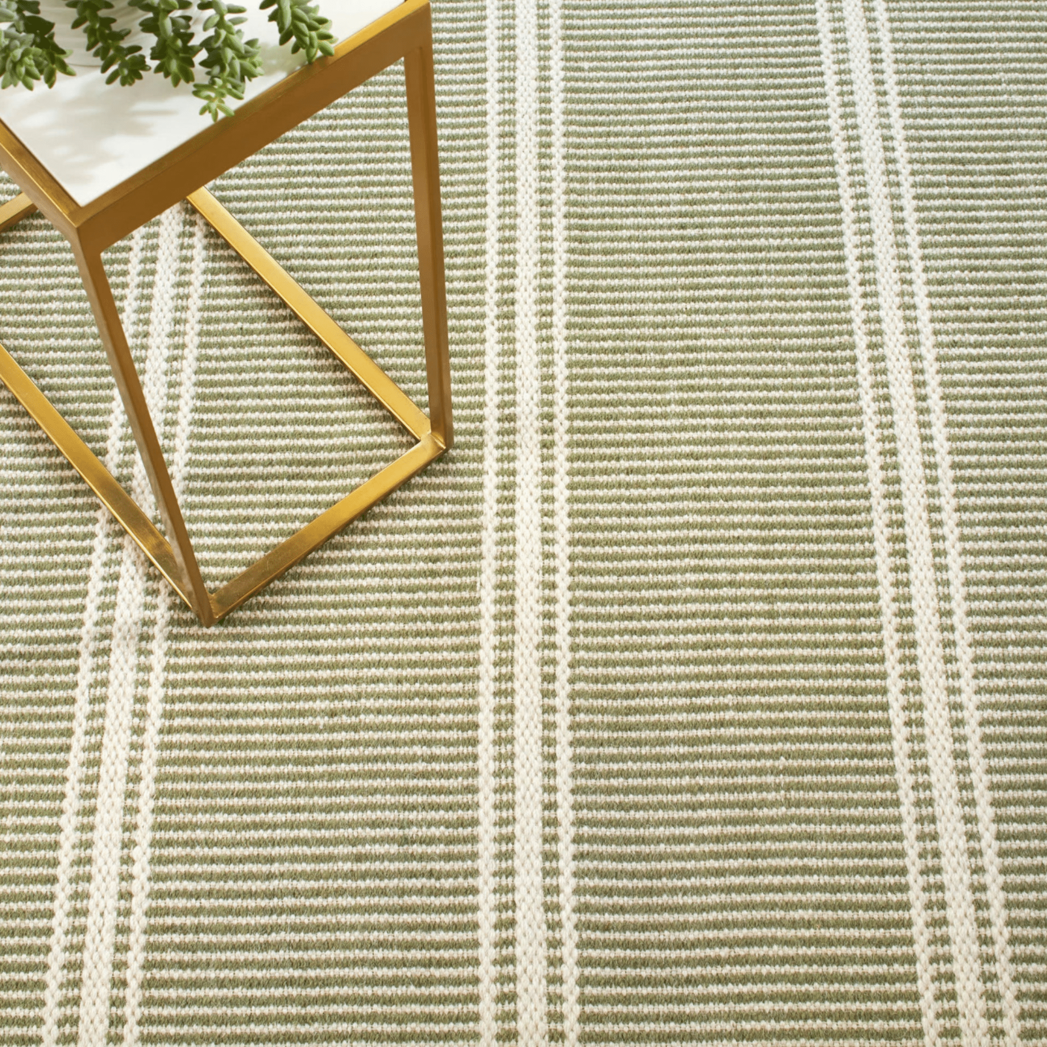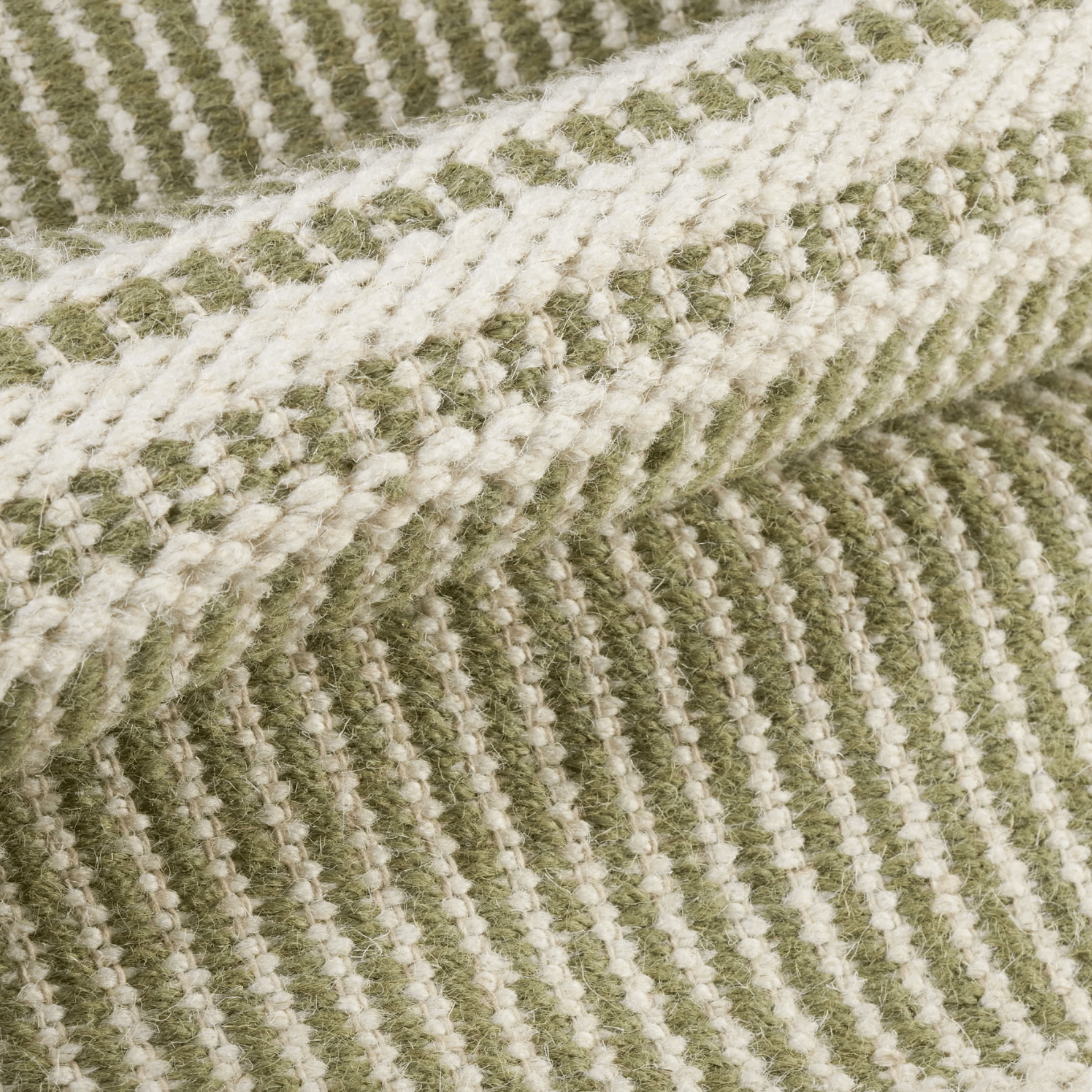 Dreamy faded mini stripes whisper poetic behind herringbone relief spacers like the sound of the distant surf. Add a beachy feel with this weathered effect, durable, lightweight, wool flatweave rug. Versatile for all high traffic areas with a modern and timeless touch. Expertly handwoven in a low profile structure from naturally warm and cozy wool, a durable, soil resistant, sustainable, biodegradable resource.