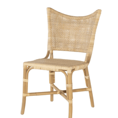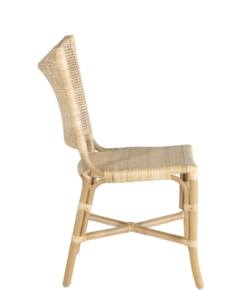 Classic and coastal, the Marathon Key woven chair is crafted from a pole rattan frame and a cane back. Add a touch of beachside class to any dining arm.