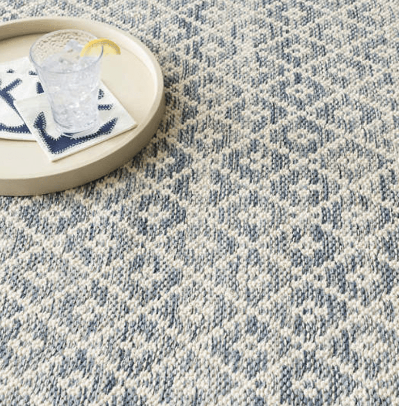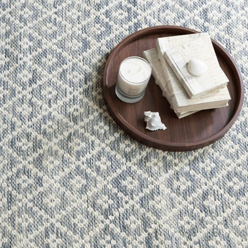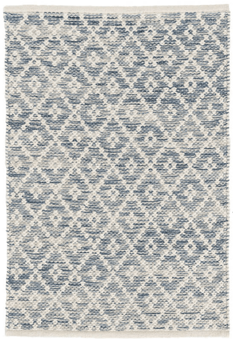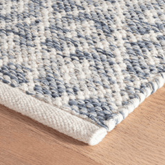 Lightweight, easygoing flat weave cotton rug with a classic diamond pattern made new with a faded melange of monochromatic mineral blues. The Melange Diamond Handwoven Cotton Rug is perfect for any room in the house.