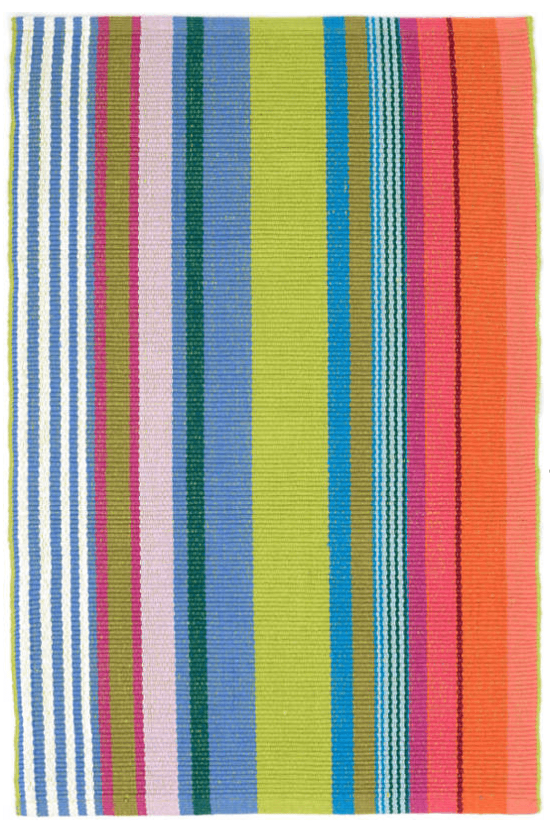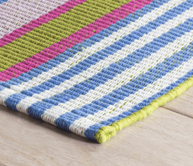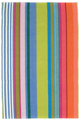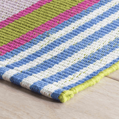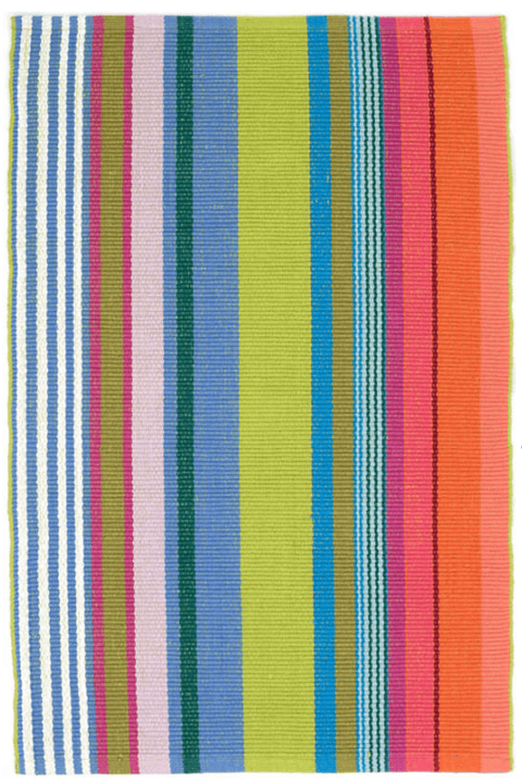 The Mellie Stripe Woven Cotton Rug comes in varying shades of citrus, blue, orange, pink, and green, this striped woven cotton rug is a lighthearted, bright addition to any room. The perfect pop of color year round or seasonally.