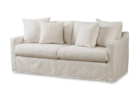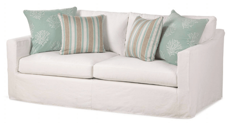The Merritt Island Slipcovered Sofa offers a neat, clean yet relaxed coastal feel. The track arms have a stylish slope and the back pillows have a neat knife edge providing a more modern feel. It is available in three sizes and with a bench seat or two over two. Comes standard with a clean seam.The perfect sofa for your coastal living area.