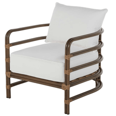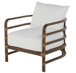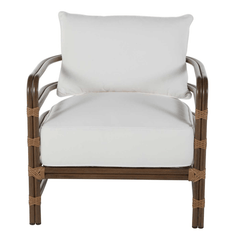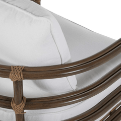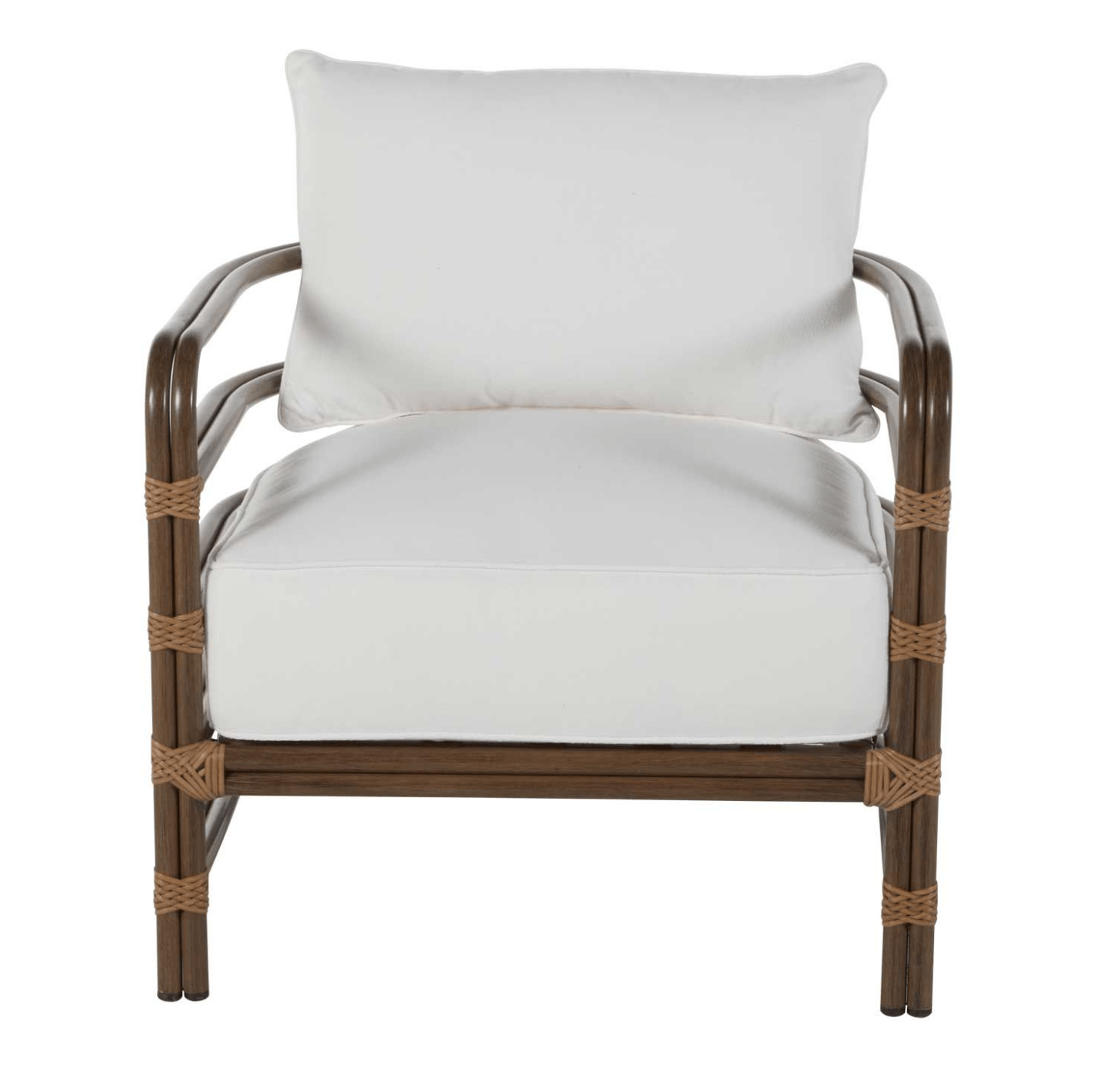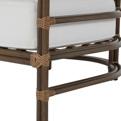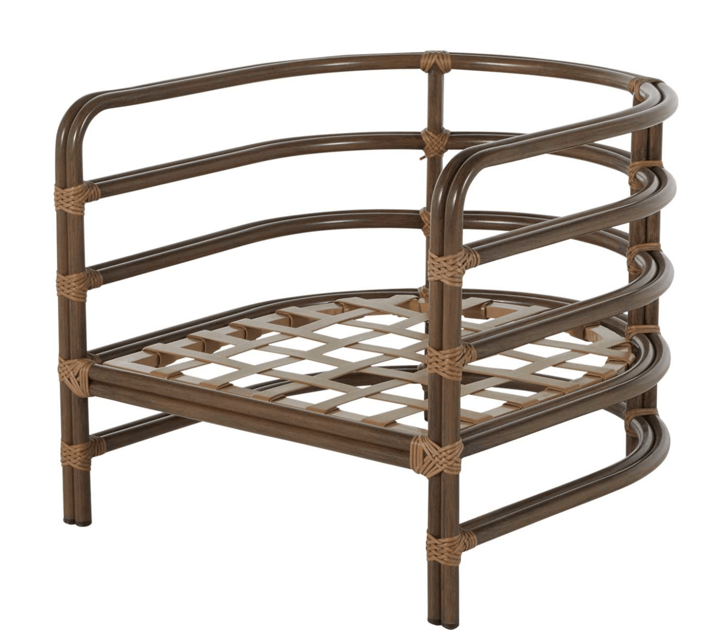 Inspired by the vintage look of natural rattan, the Monaco Outdoor Collection mixes materials for a modern, minimalist take on outdoor furniture. The Barrel Chair is crafted with premium wrought aluminum paired with N-dura™ resin wrapping, which creates a dramatic interplay between the oak and burlap finishes. Vintage meets modern technology to ensure longevity and beauty with little to no maintenance.
