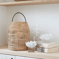 This natural bamboo hurricane sparks a desire for warmer days. Add a candle to let a soft glow peek through its woven base. Style a bouquet of your favorite florals for a fresh touch. Whether your style is boho, coastal, or a mix of both this piece will add a playful touch to your home's interior.