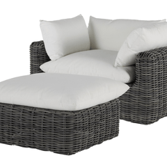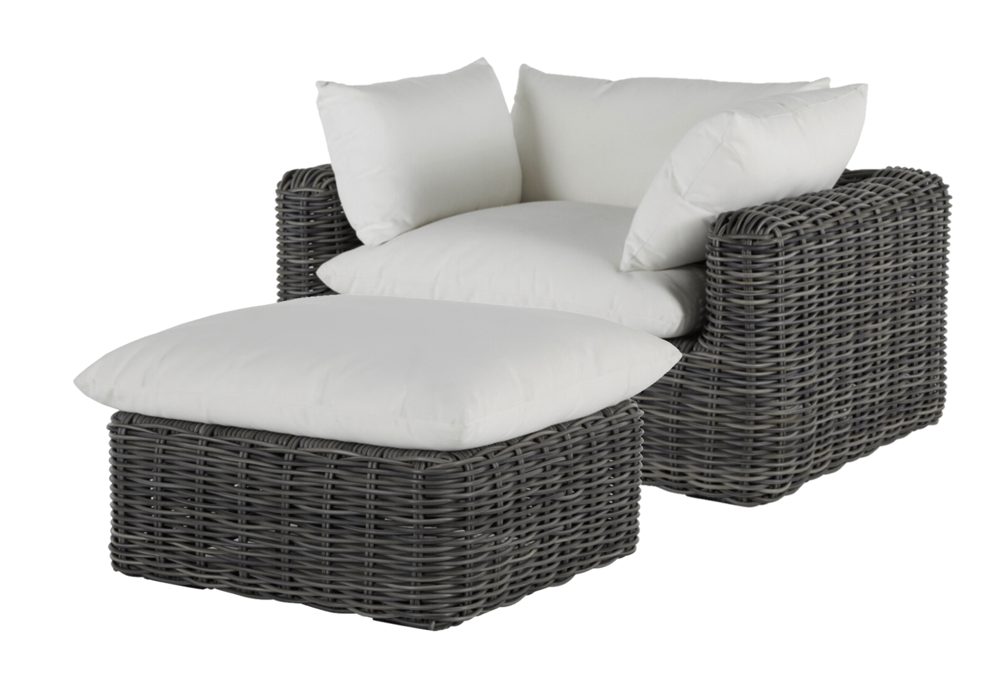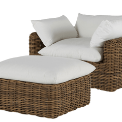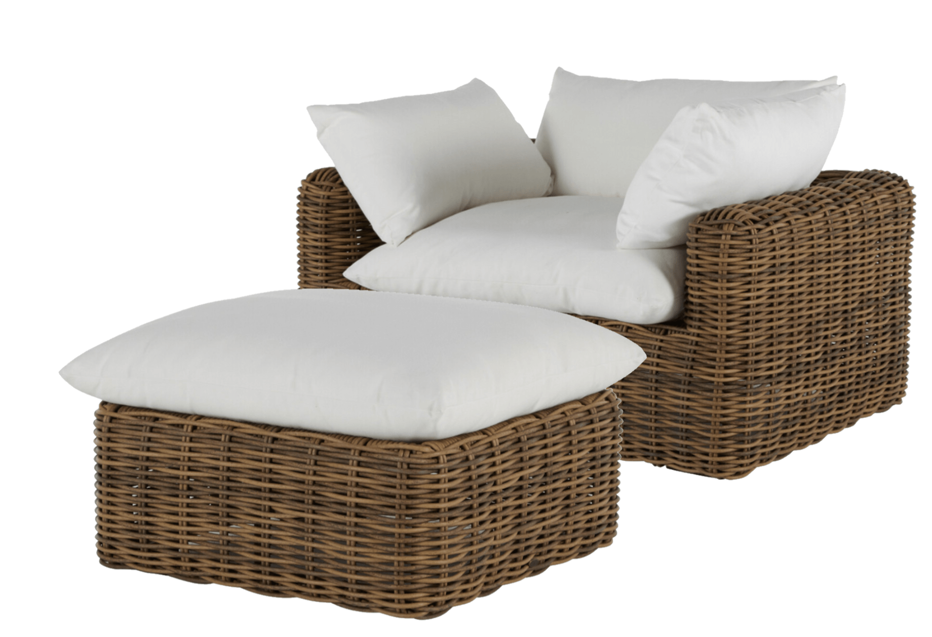 The Kona Ottoman is adorned with the cloud cushion and is finished in a N-Dura resin wicker for a worry-free experience with the look of natural materials.