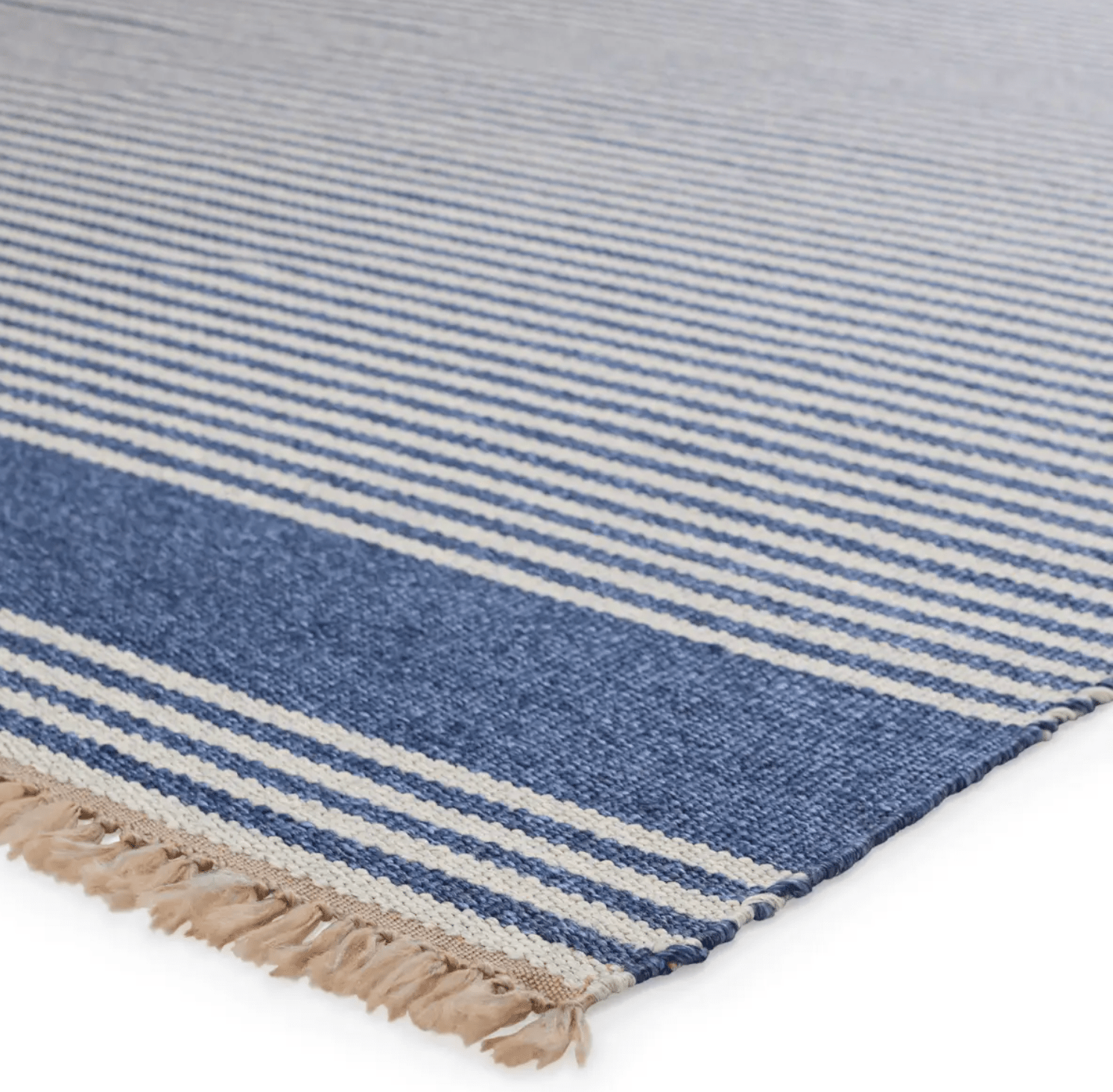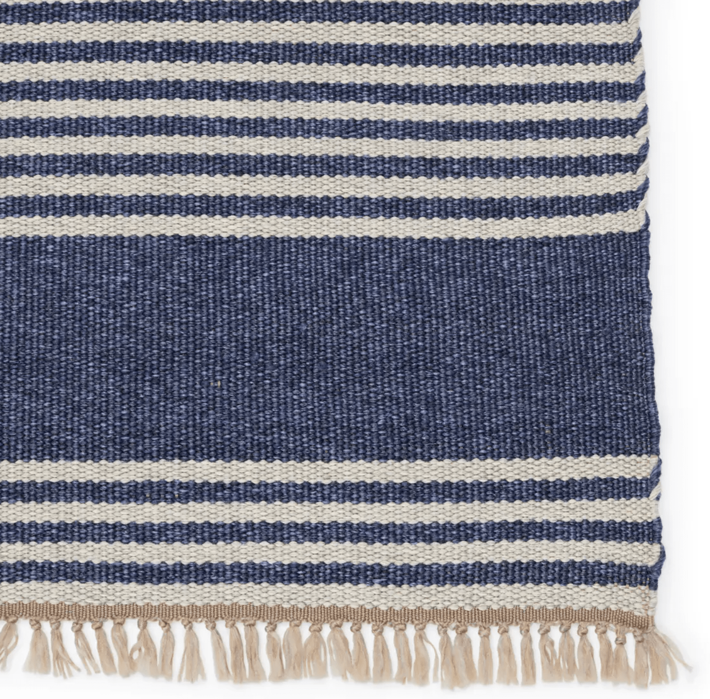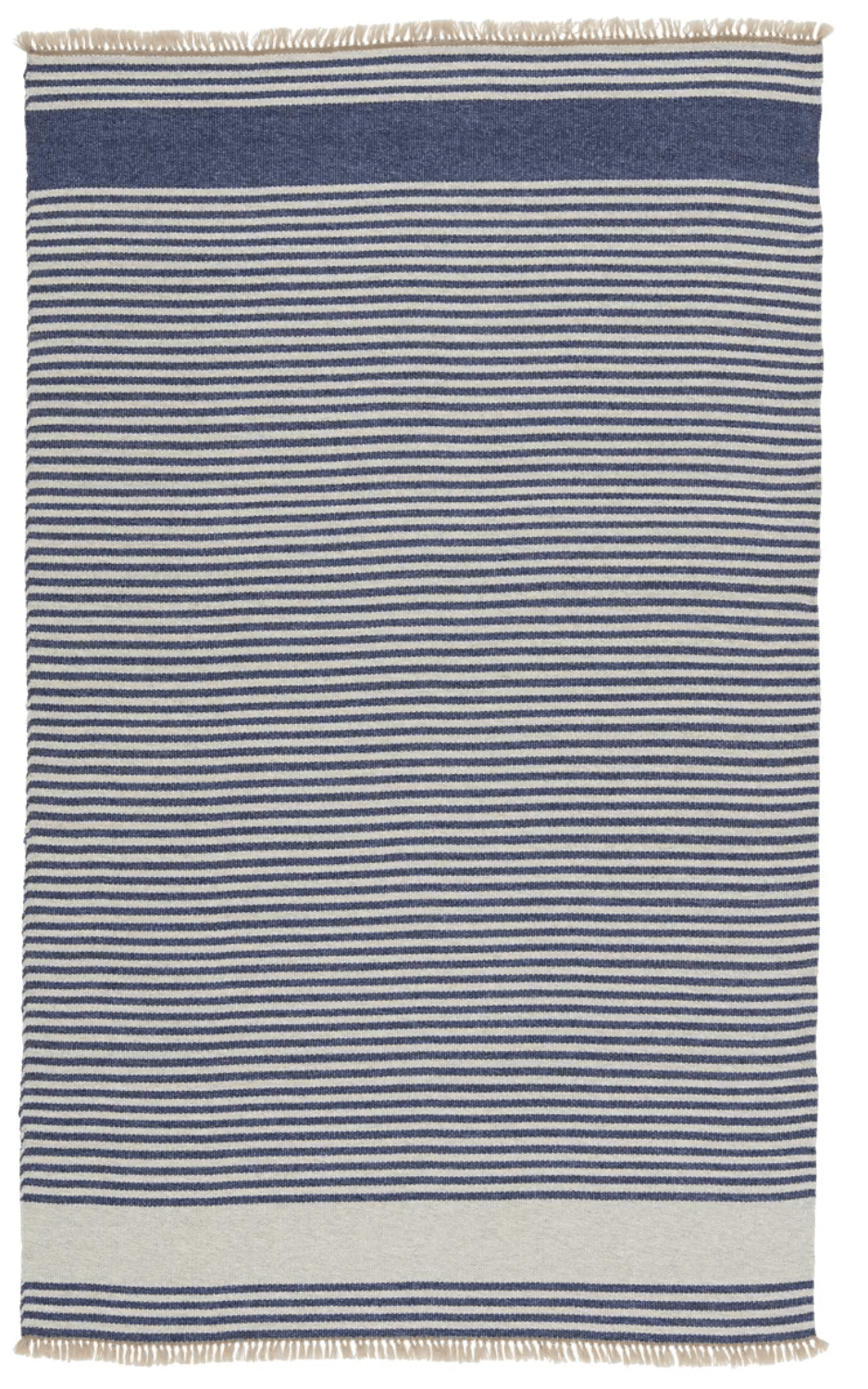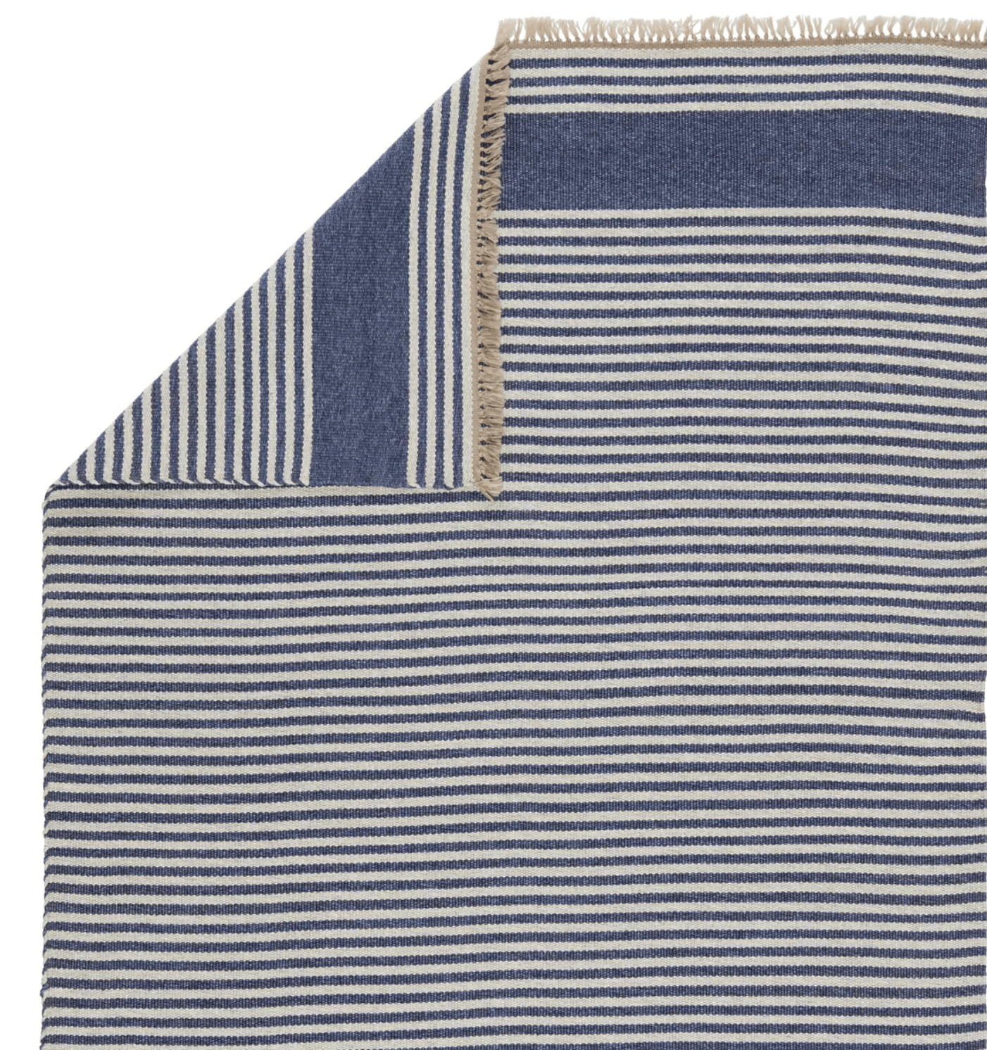 Relaxed and sophisticated in the same moment, the Morrow Bay is a chic coastal-inspired dhurrie design. The ticking stripe Strand rug complements both indoor and outdoor spaces with a versatile colorway of blue and beige. Handwoven of durable polypropylene, this low-profile rug is easy to clean and perfect for high-traffic areas. high-traffic areas.