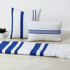 Hand-made textiles from Argentina, the Patagonia Collection is simply gorgeous. Featuring two sizes in hand-knit pillows as well as a heavy-weight hand made cotton throw with electric blue stripes. It's the perfect pillow & throw combination for not only comfort but gorgeous aesthetics with bold colors.