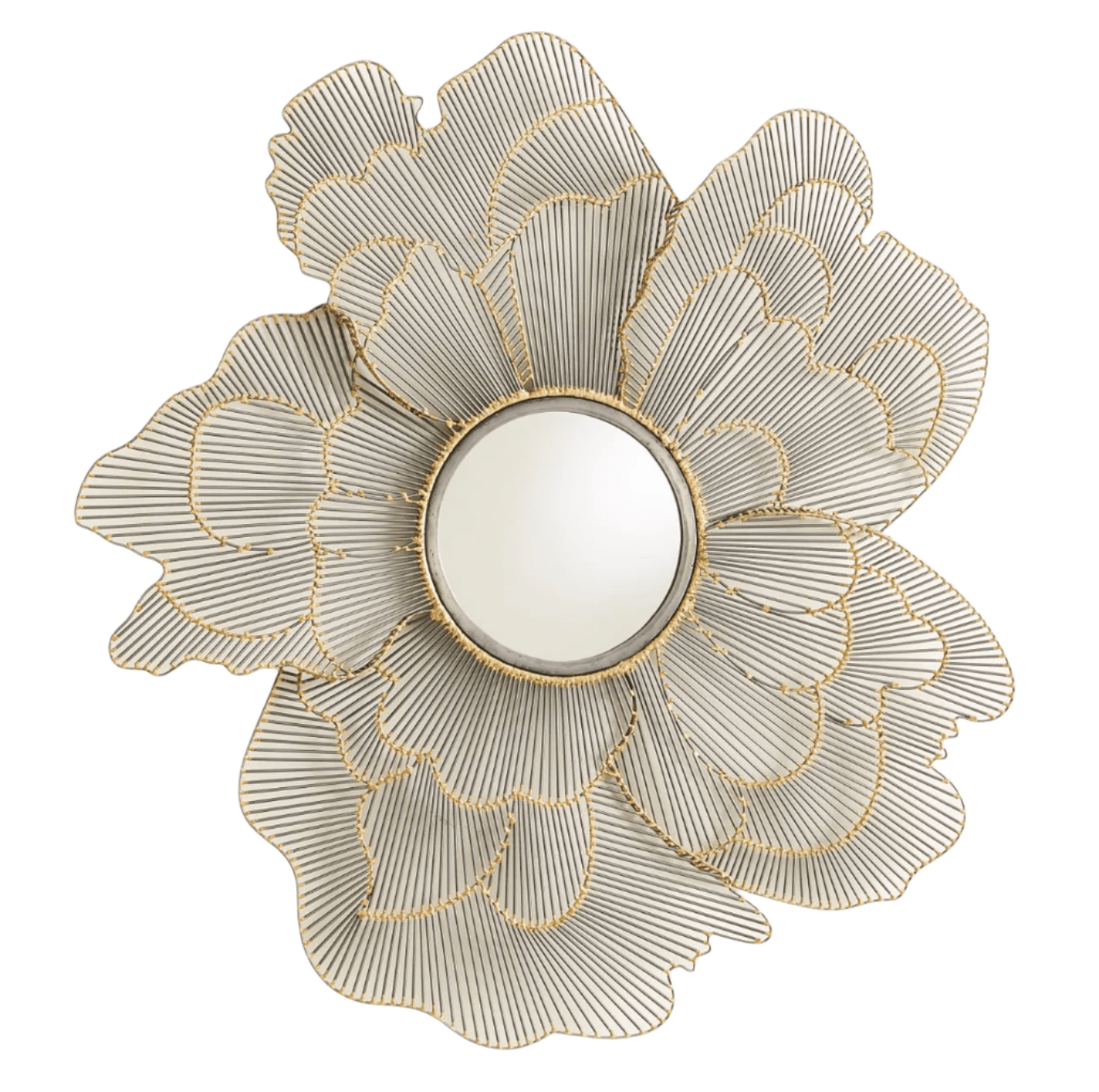The Iron Poppy Mirror is an artful fusion of elegance and nature. Handcrafted from natural iron, its sculptural frame features graceful contours and is accented with fine brass brazing along the edges—each detail a tribute to artisanal craftsmanship. At its heart lies a polished 10.25-inch round glass mirror, offering a luminous reflection that enhances any sophisticated space. Designed for effortless display, it hangs securely from a 6-inch metal wall cleat, included for your convenience.