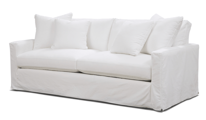 The Rehoboth Slipcovered Sofa is a standout piece from our Harborside Collection. Featuring clean seams with a single stitch, plus full depth arms, this sofa seamlessly blends comfort, style, and affordability. The back cushions feature a boxed rectangular back cushion offering added comfort. This sofa is available in three sizes with various styles such as with a bench seat or with two seats and two backs. There is also a Rehoboth Grande Version that is 41"deep.