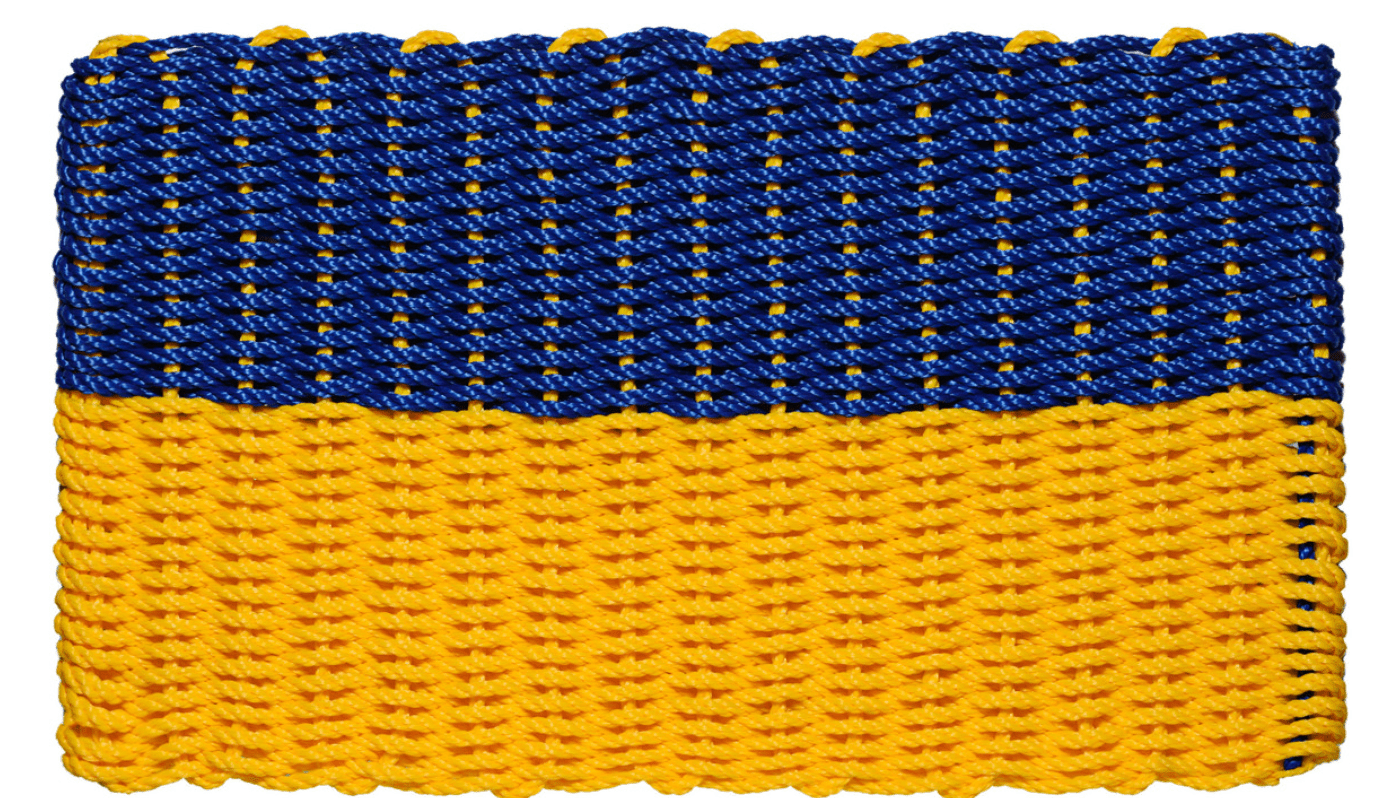 The bold color of the Kilo Signal Flag Rope Doormat adds a nautical touch for any yachtsman's love for the sea, whether displayed at home, the cottage or on a boat. Phonetic Pronunciation: KEY-loh. Navy & International Meaning: I wish to communicate with you. This Yellow and Blue Doormat is a reversible, woven polypropylene rope mat that is made in the USA. These are crafted to stand up to the rigors of daily use - keeping snow, sand, dirt and debris outside - year after year. Tough polypropylene cordage won't rot from exposure to rain, sun or salt water.