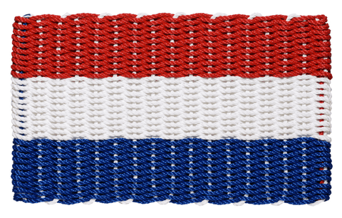 This USA Stripes of Red, White & Blue Rope Doormat is a reversible, woven polypropylene rope mat that is made in the USA. These are crafted to stand up to the rigors of daily use - keeping snow, sand, dirt and debris outside - year after year. Tough polypropylene cordage won't rot from exposure to rain, sun or salt water.