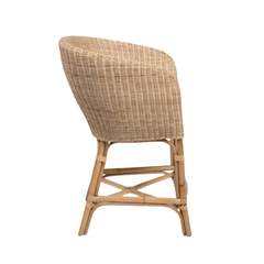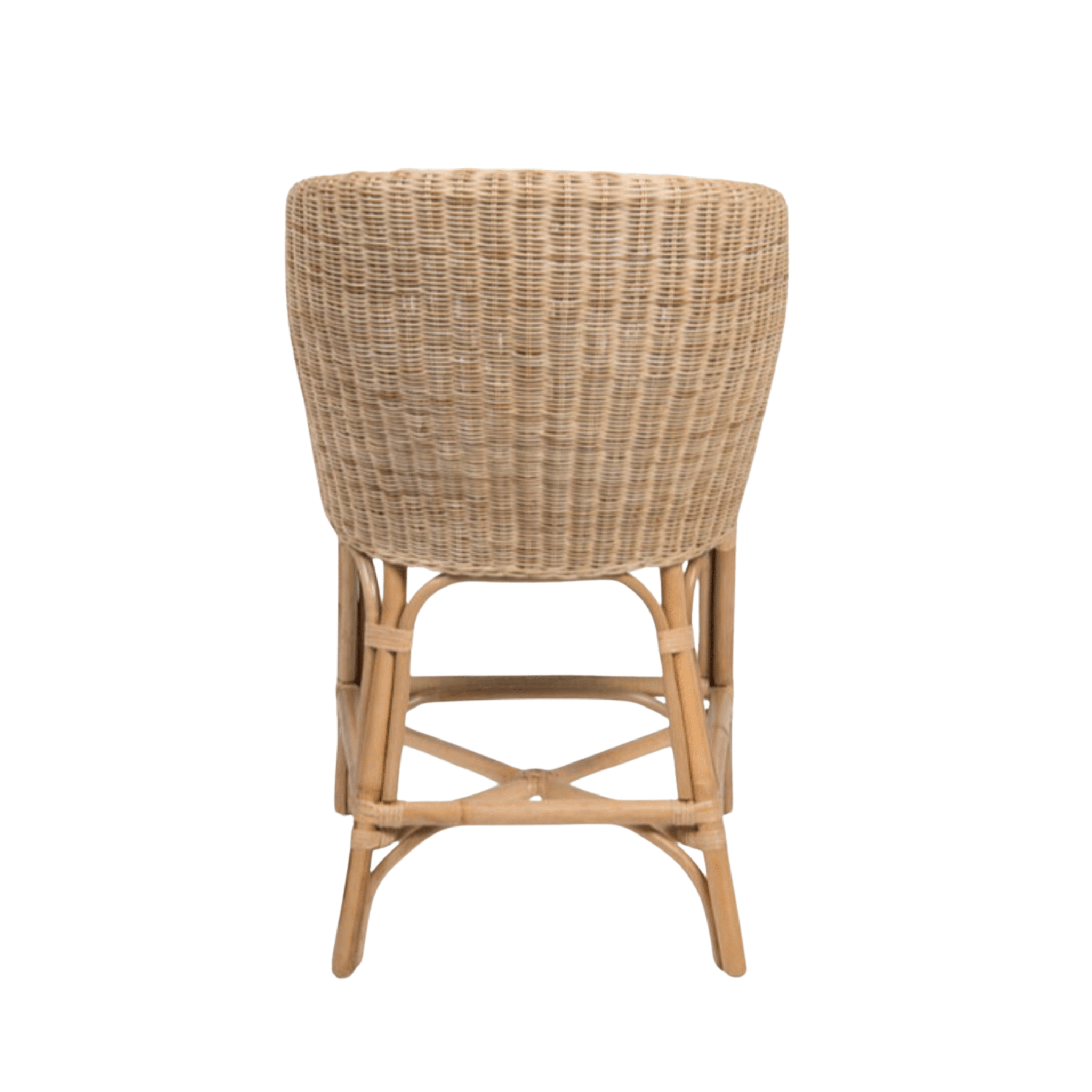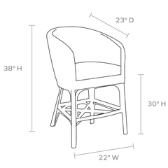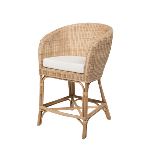 Finished in light natural wicker, the Paloma Beach Stool is a bold spin on traditional barrel chairs in natural wicker. Comes with loose cotton cushion.