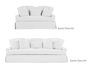 The Santa Clara Sofa reimagines classic lounging with a fresh, sophisticated twist on the timeless camelback design. Offered in both studio and full sofa widths, this slipcovered piece features a gently arched backrest with graceful humps that create a flowing silhouette—a nod to traditional craftsmanship. Plush, loose back pillows rest against the subtly contoured frame, echoing its elegant curves while delivering exceptional comfort. A tailored kick-pleat skirt extends to the floor, gracefully concealing the legs and adding a final touch of refinement.