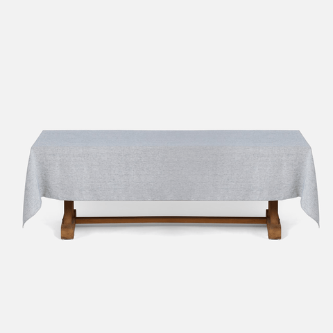 The Saunton tablecloth is made from linen with classic pinstripes, adding a casual touch to the table.