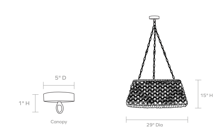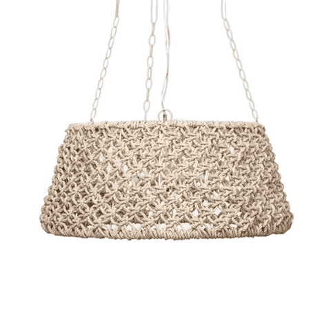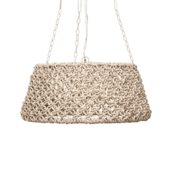 All-natural abaca rope is expertly woven to create the textured patterned of the Sea Folly Chandelier. Its classic drum shape with a wide drop and organically neutral hue make it incredibly versatile to use in any space like the dining area, entrance and more. Even the bars are wrapped in rope to give it a totally finished, coastal look.