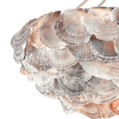 With a shade covered in capiz shells, the Seahouse Semi-Flush is a textural wonder. The shells, which are overlapped and applied by hand, take hours to affix to the wrought iron frame in a smoke wood finish. The natural colors in the shade of the shell semi-flush make it perfect for a nautical interior.