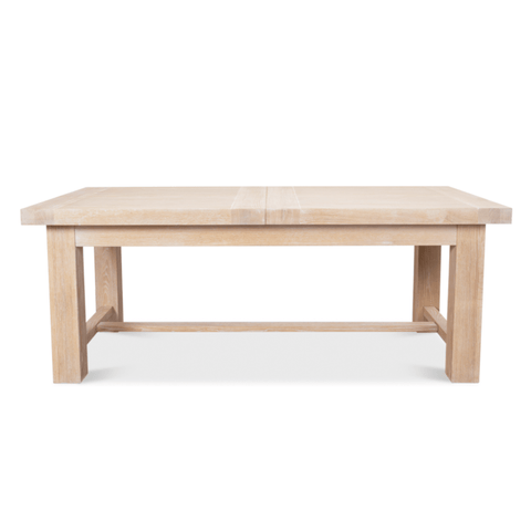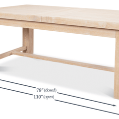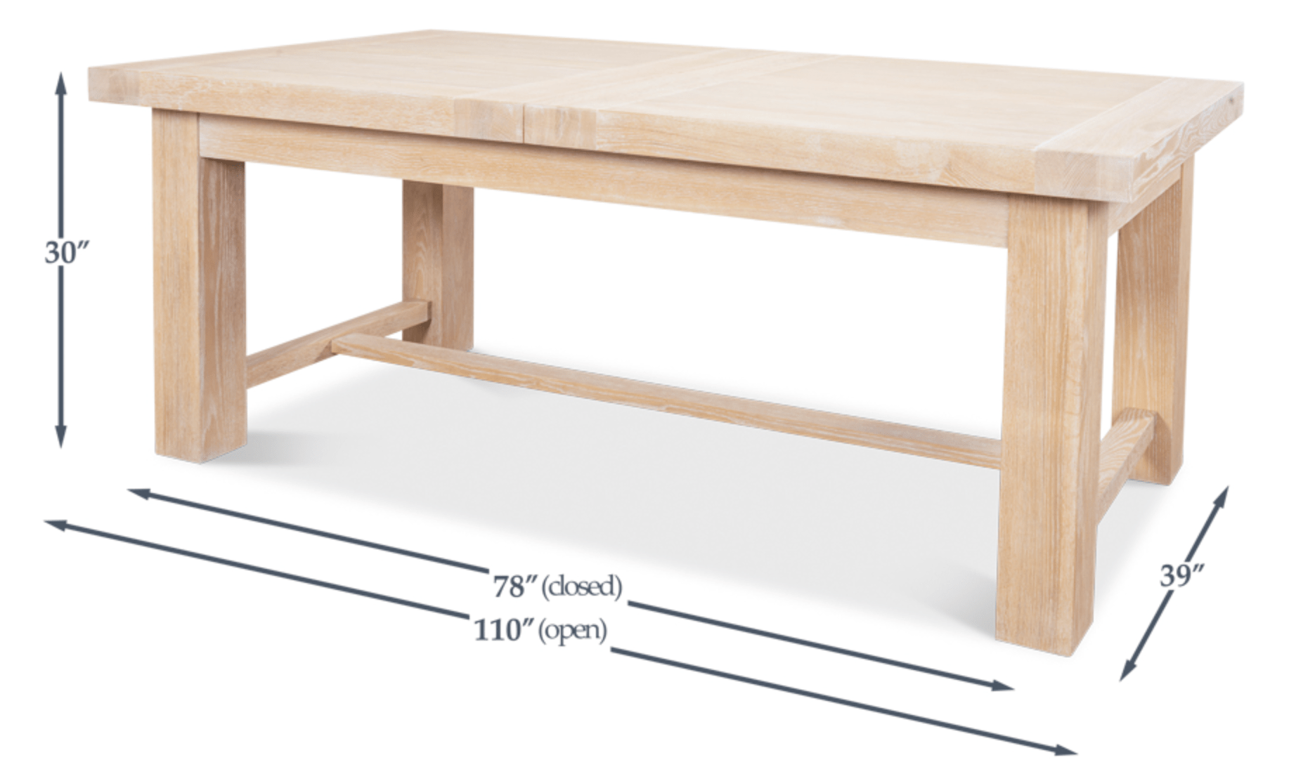 Bring relaxed sophistication to your dining space with the Seaside Retreat modern coastal dining table, designed to blend clean lines with a soft, sun-washed aesthetic. Crafted with a warm, tan-toned finish, the table showcases a blocky silhouette that’s both contemporary and timeless. Measuring 78" long, it includes two 16" extension leaves that expand the table up to 110"—perfect for hosting gatherings large or small. At 39" deep and 30" high, it provides ample space for dining comfort while maintaining a sleek profile.
