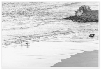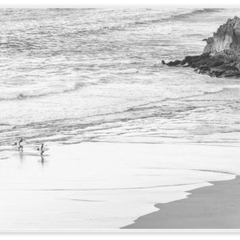 A stunning yet serene image of a pair of surfers on Lagos Beach.